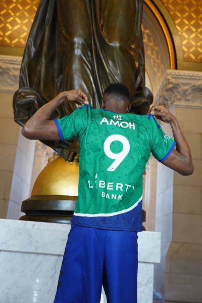The kit takes inspiration from the city's historic state capitol building, featuring a green body with a dotted spiral pattern that circles around the shirt to mirror the pattern found inside the capitol building's gold leaf dome.