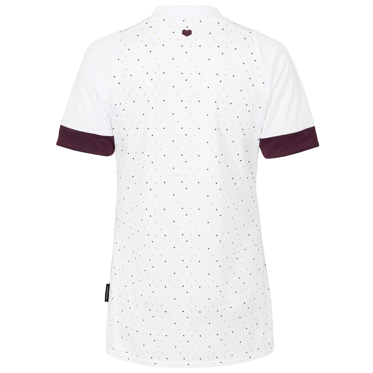 Inspired by the famous cobbled Edinburgh streets, this season Hearts Away square polka dot jersey has a playful aesthetic.