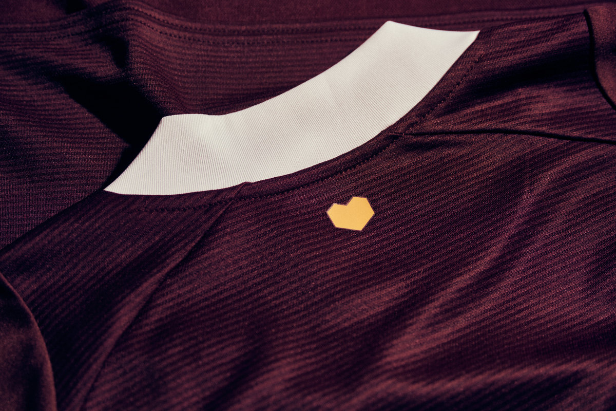 The new 22/23 home jersey features the club’s traditional dark maroon throughout, complemented by a white collar and cuffs.