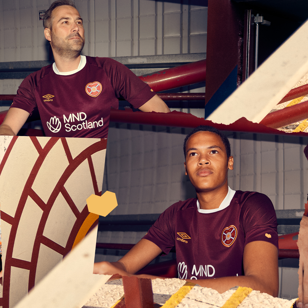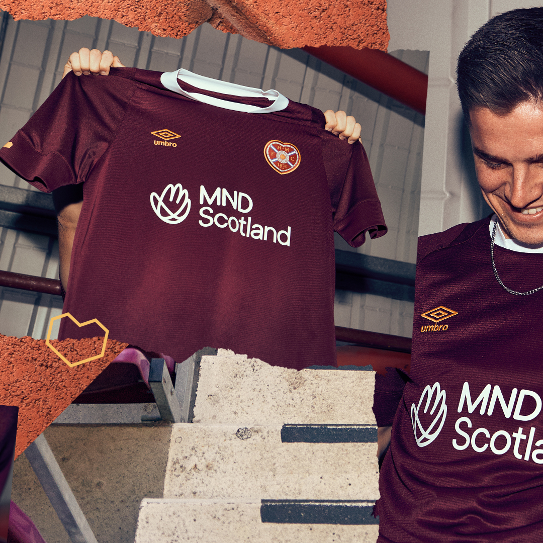 The new MND Scotland logo – revealed for the first time today – adorns the front of the shirt. As well as the woven club crest, the jersey also features a bespoke heart on the cuff and the back of the neck.
