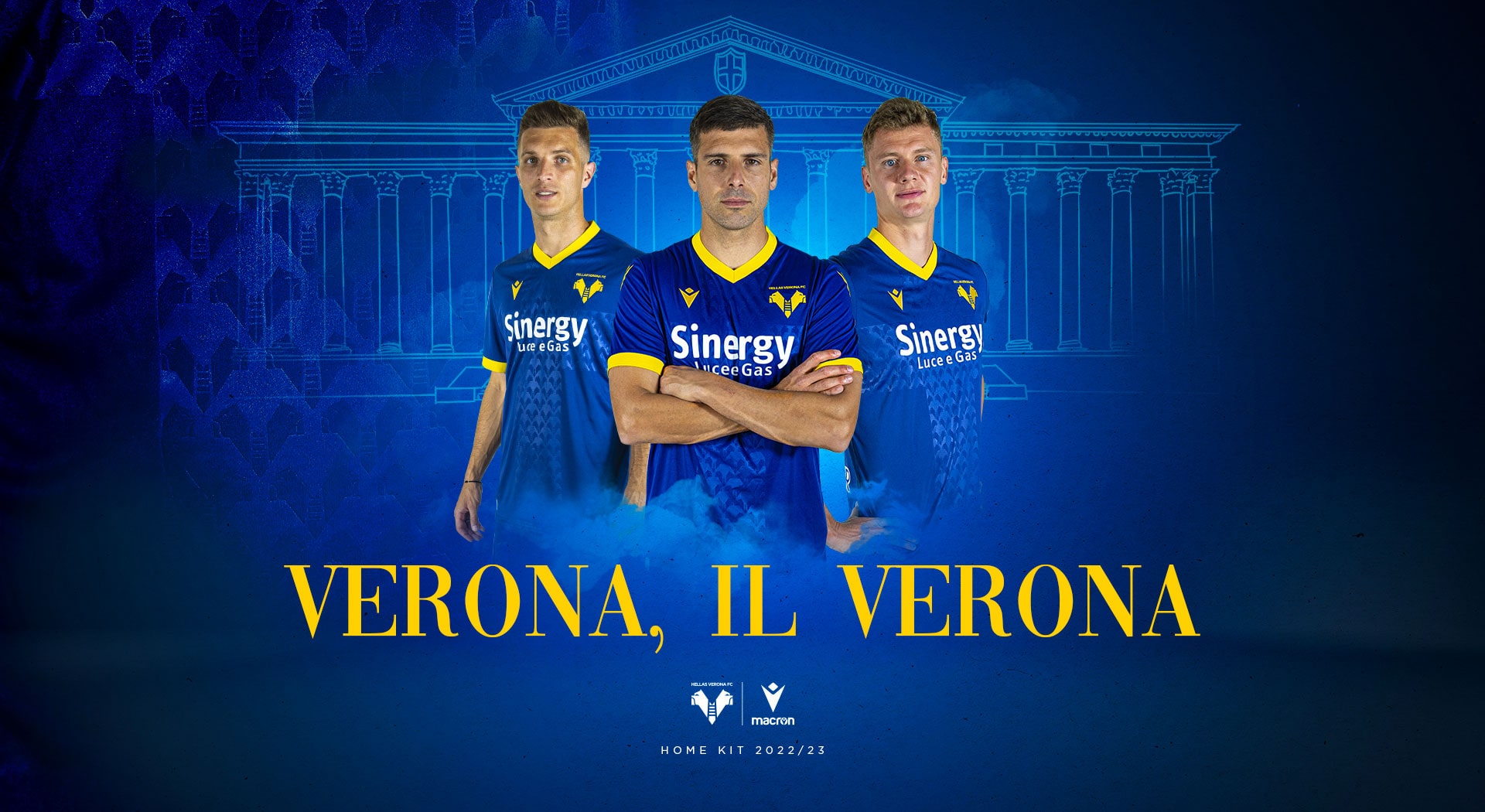 This is the new Hellas Verona 22/23 Home kit by Macron.
