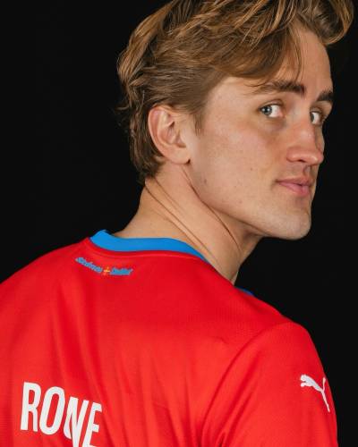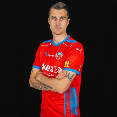 The new primary design for the Swedish Superettan side is in red with blue and features a rendering of the “Kärnan” medieval tower on the sides of the trunk.