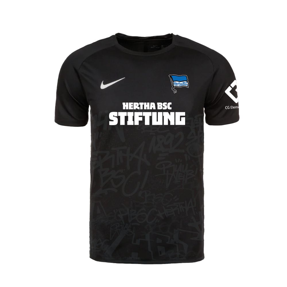 Featuring graffiti-style embellishment, the Nike shirt sees the Hertha BSC Foundation take centre stage in the main-sponsor position and this is part of the “Bolzplätze für Berlin” initiative to restore and build urban football courts around the German capital.