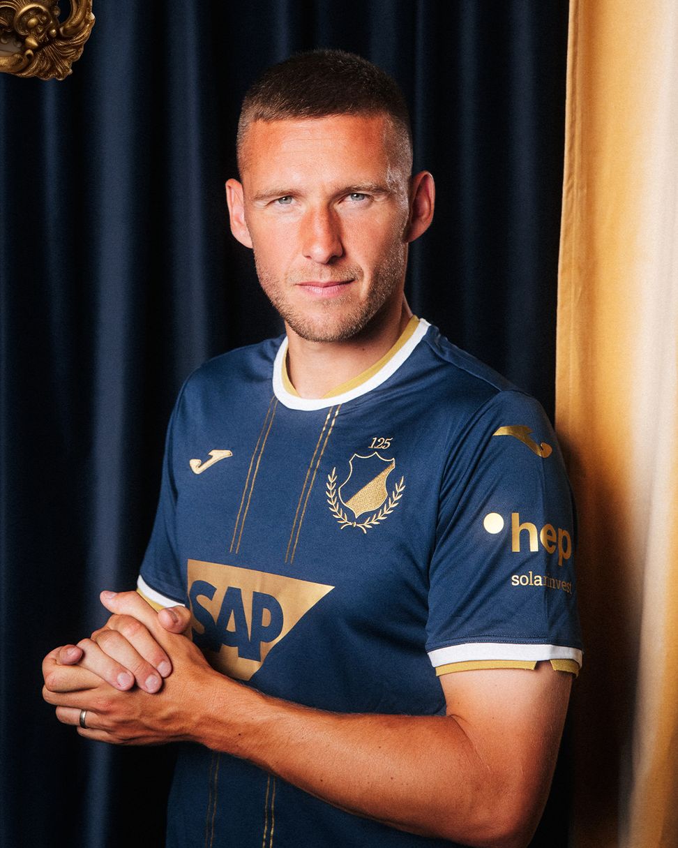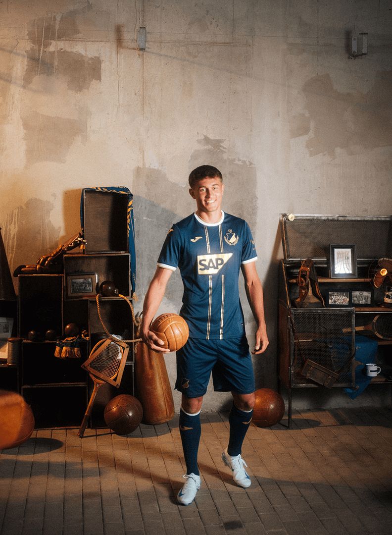 The logos of main sponsor SAP, sleeve sponsor hep solar, and kit manufacturer JOMA are also in gold, symbolising the club's 125-year journey from its origins as a small gymnastics club in 1899 to competing on the European stage.