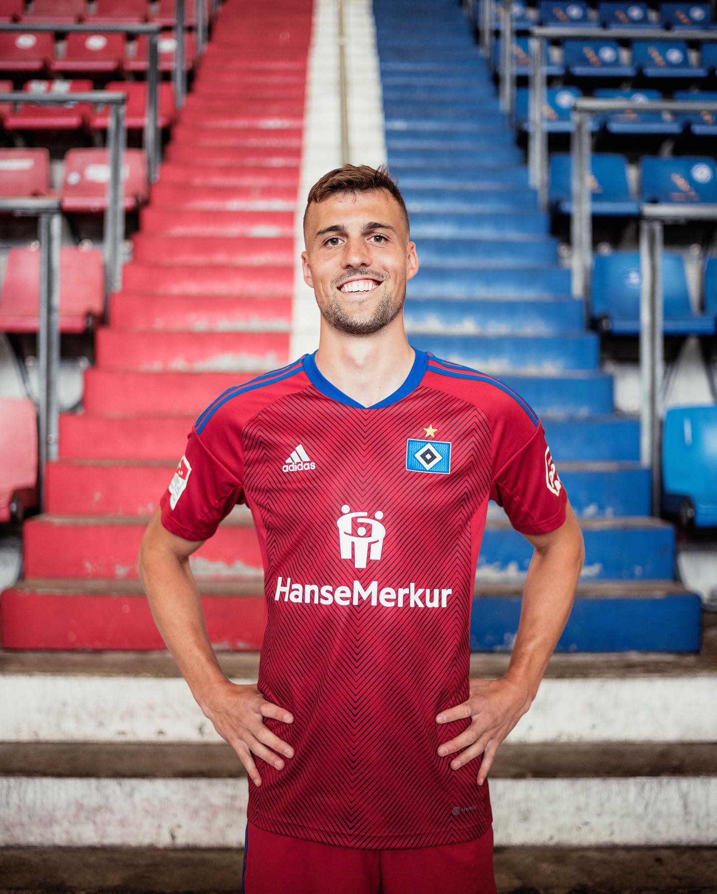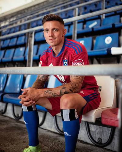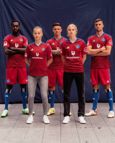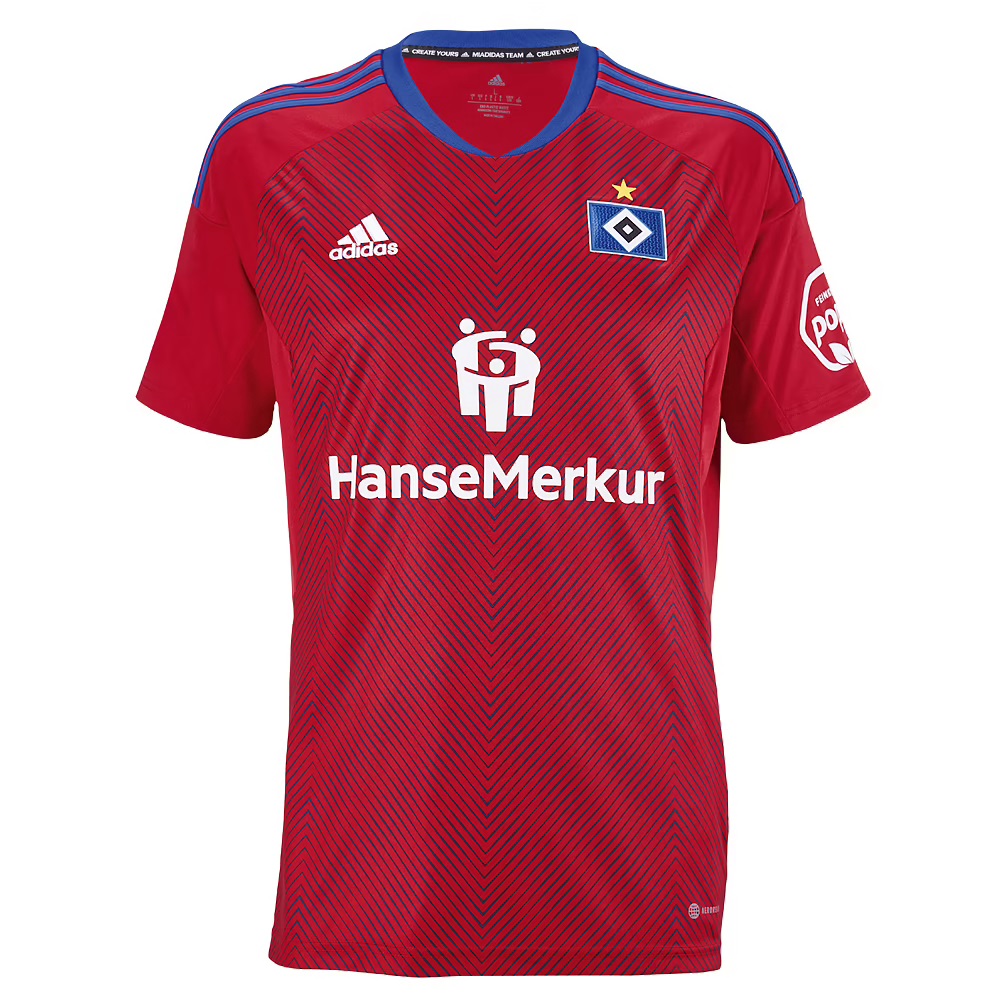 The Hamburg-based German 2. Bundesliga side have a red design as their new nominal secondary-change release, with patterning to the trunk and their supplying compatriots’ famous stripe branding in blue.