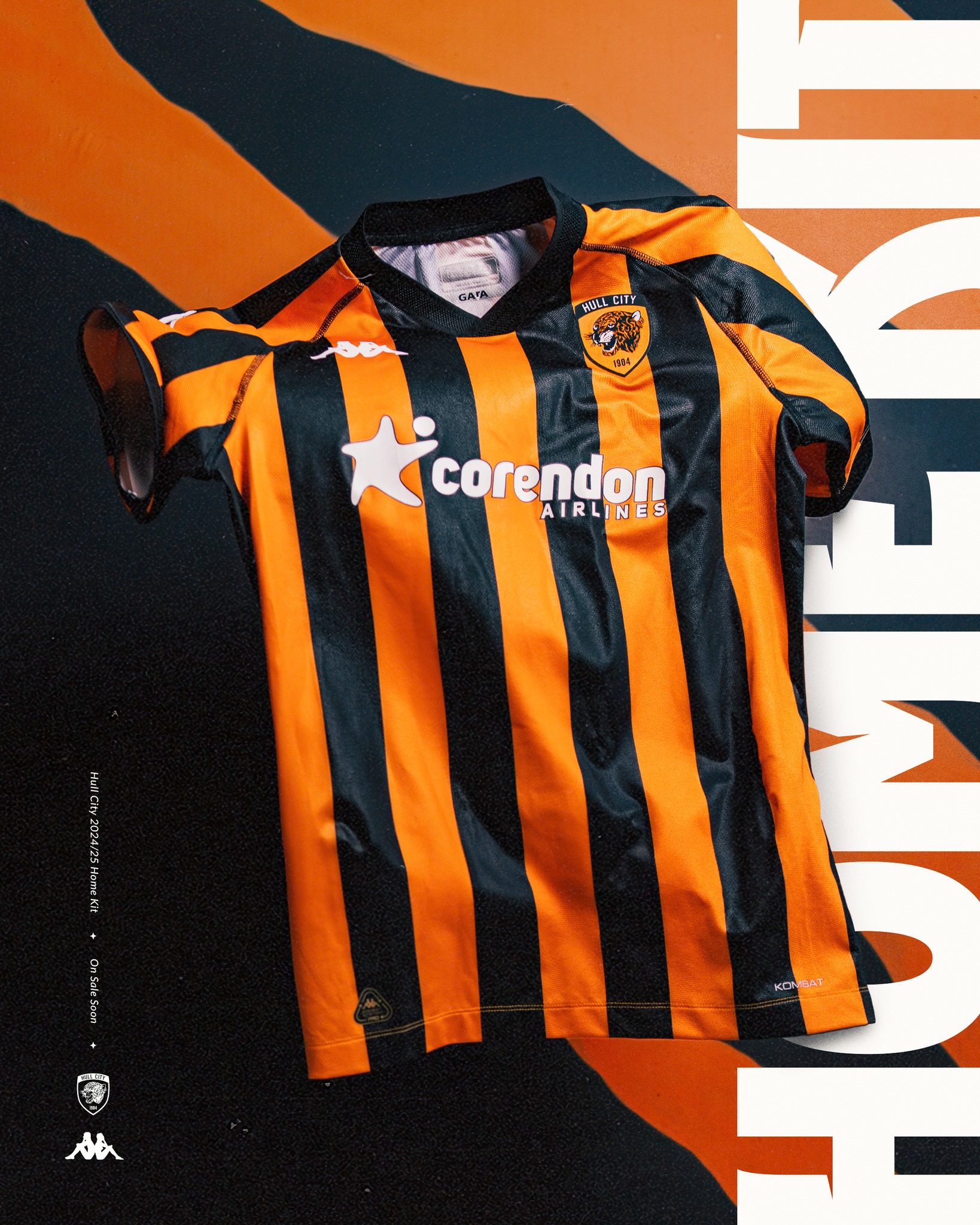 This is the new Hull City Association Football Club (AFC) 24-25 Home shirt from Kappa.