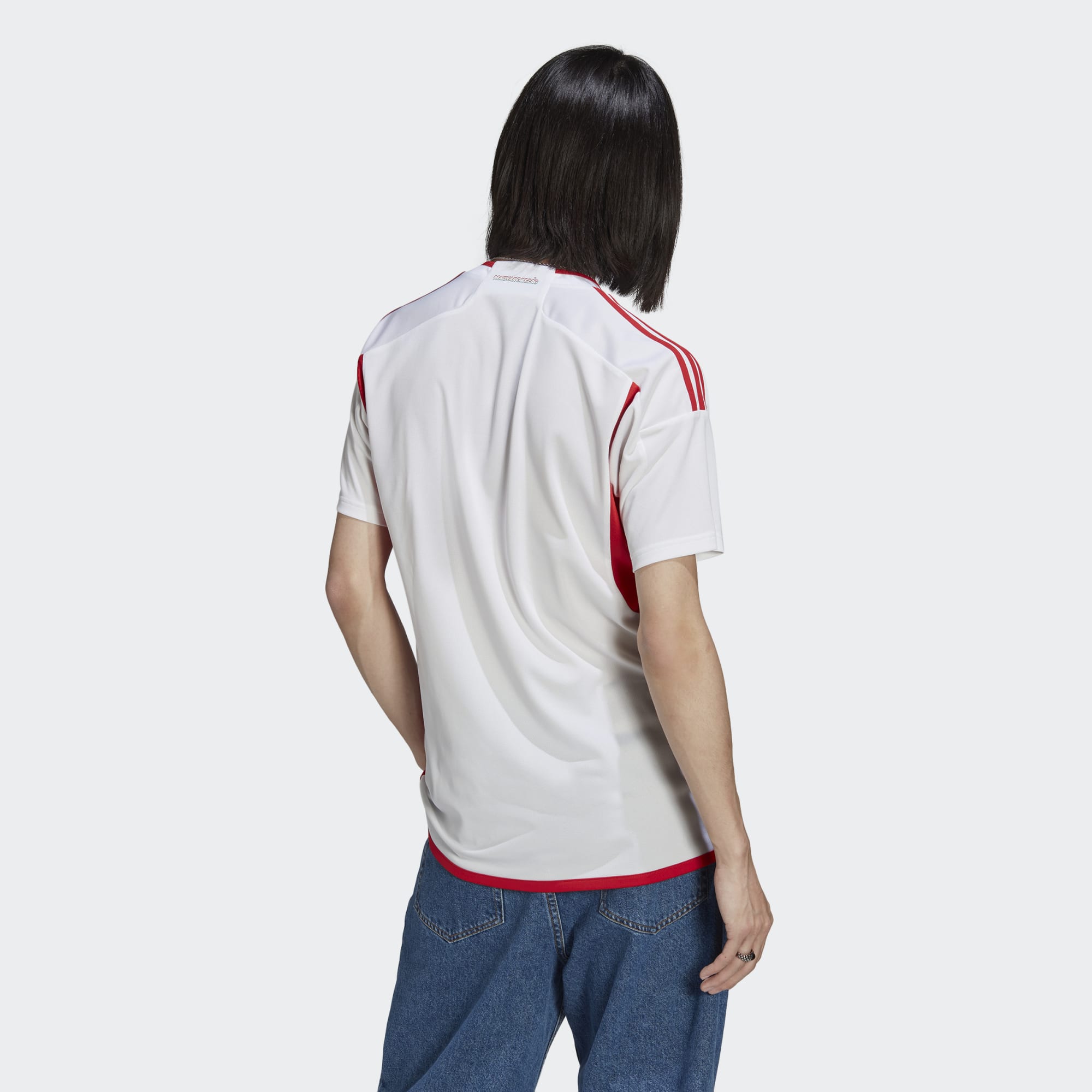The 2022 design from “The Brand With the 3 Stripes” is in white, with most trim - including adidas’s branding - in red and a tri-colour flag band across the front of the trunk.
