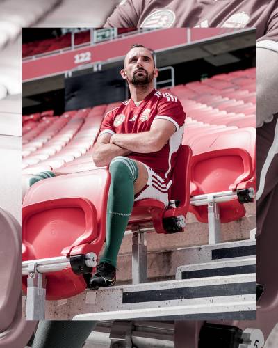 The new release, debuted in the impressive away Nations League victory over Germany, is in red with white trim, including the German supplier’s striping and “3-Bar” logo.