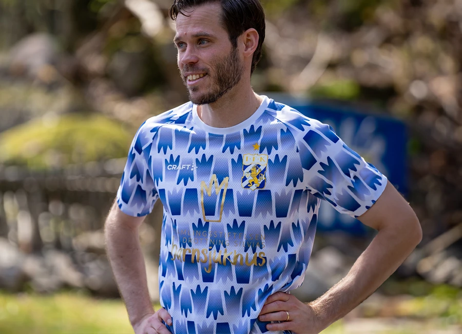 Intended to raise both the profile of, and through sales, funds for the Drottning Silvias barn- och ungdomssjukhus (Queen Silvia's Children's Hospital) in the club’s home city of Gothenburg, the design is in blue and white with golden embellishment as well as the supplier logo in white and the crest in full colour.