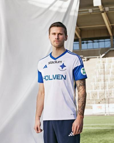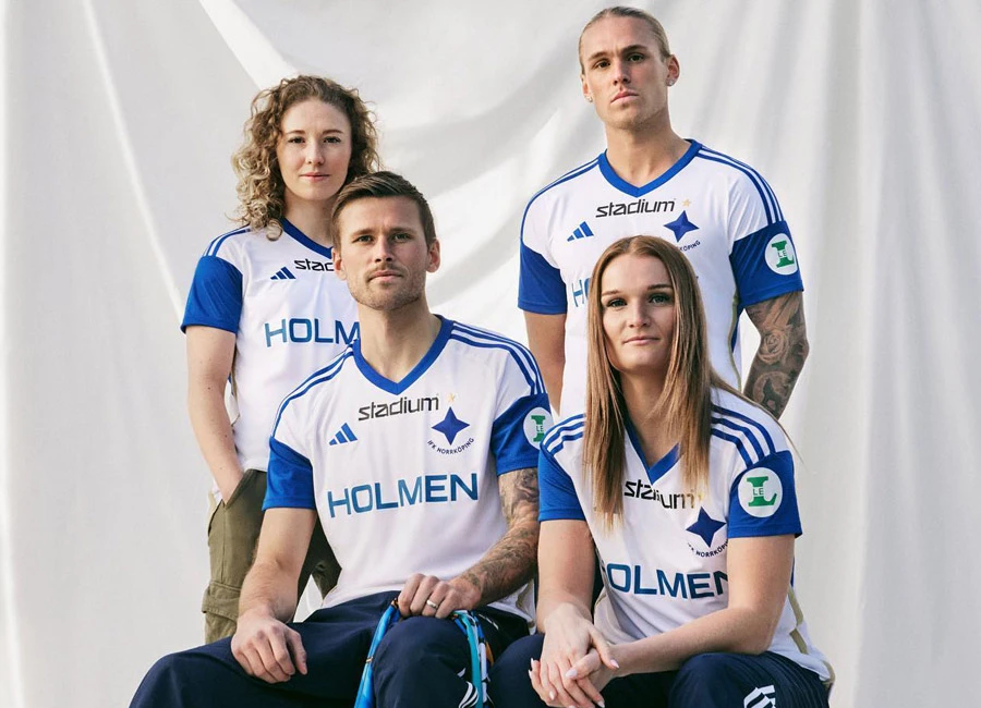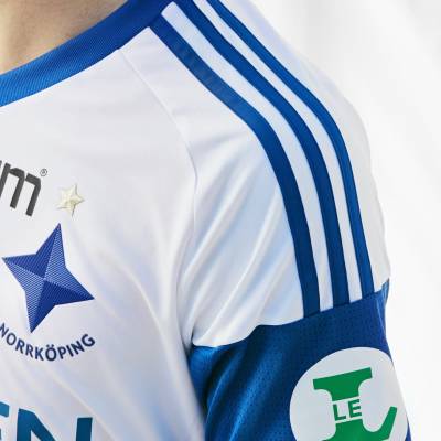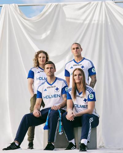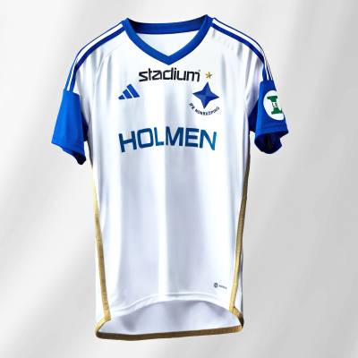 The new release - to be worn by the Swedish Allsvenskan men’s team and the women’s team in their first top-flight season - is largely in white with blue, including the branding of supplier adidas, but the side-of-trunk and rear-hem trim is in gold.