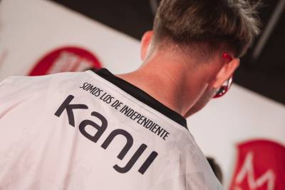 The upper back of the shirt is adorned with the phrase “SOMOS LOS DE INDEPENDIENTE” ("WE ARE THOSE FROM INDEPENDIENTE") and is paired with navy shorts and socks to complete the full kit.