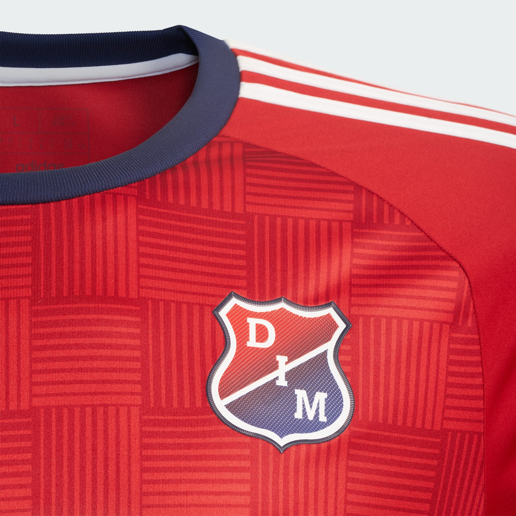 The 2024 primary release for the Colombian Categoría Primera A side is in red and features a weave pattern to the trunk that is being marketed as representing the “flags and rags” put on display by the fans at “DIM”’s Estadio Atanasio Girardot home ground.