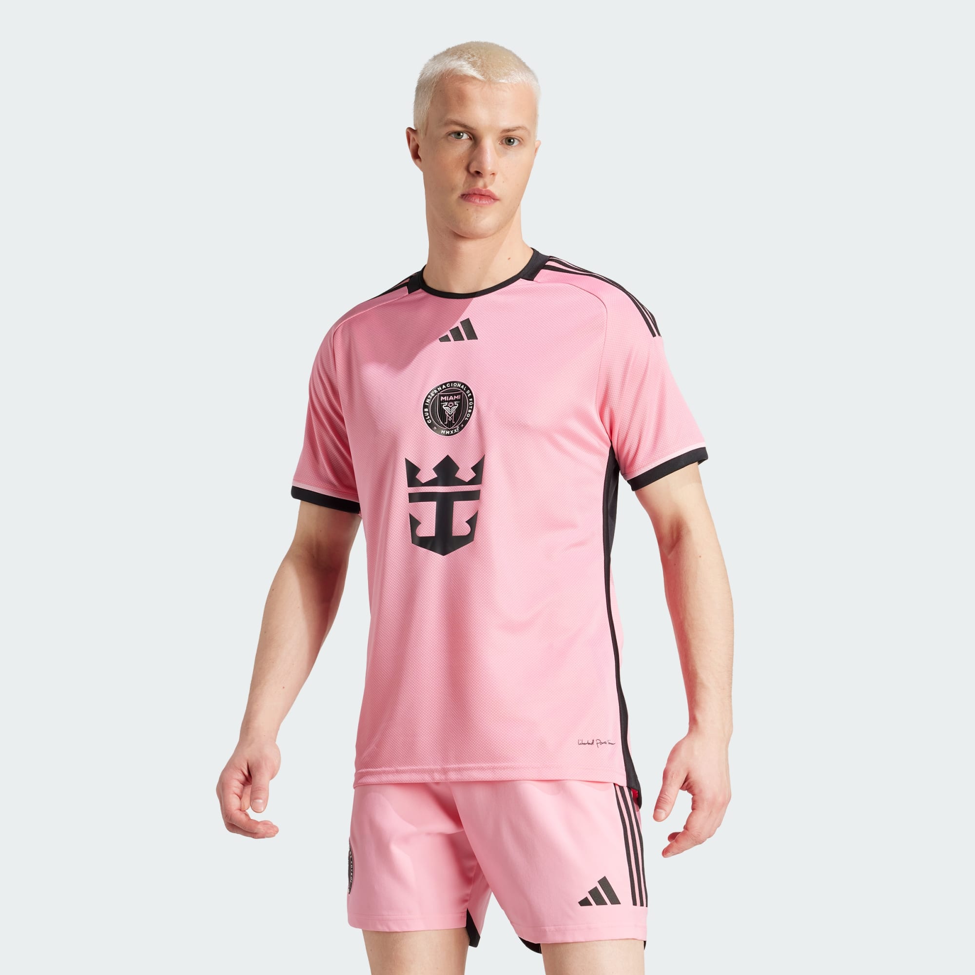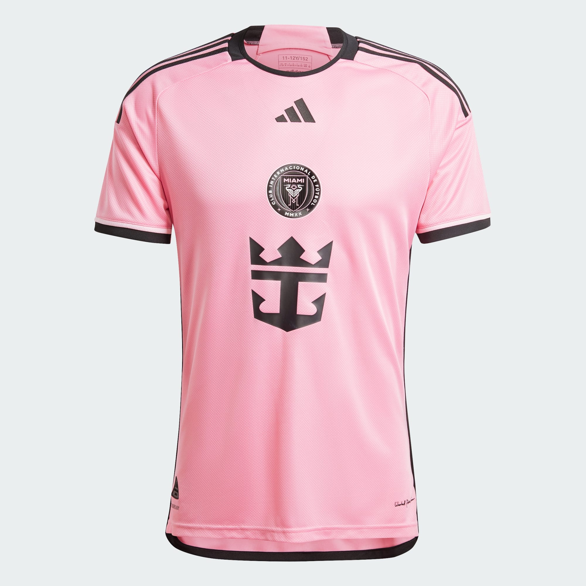 The new release for Lionel Messi’s Major League Soccer (MLS) side is in pink with centralised logos - including the German supplier’s “3-Bar” emblem, the Florida-based side’s crest and the crown-and-anchor branding of new sponsor Royal Caribbean - in black.