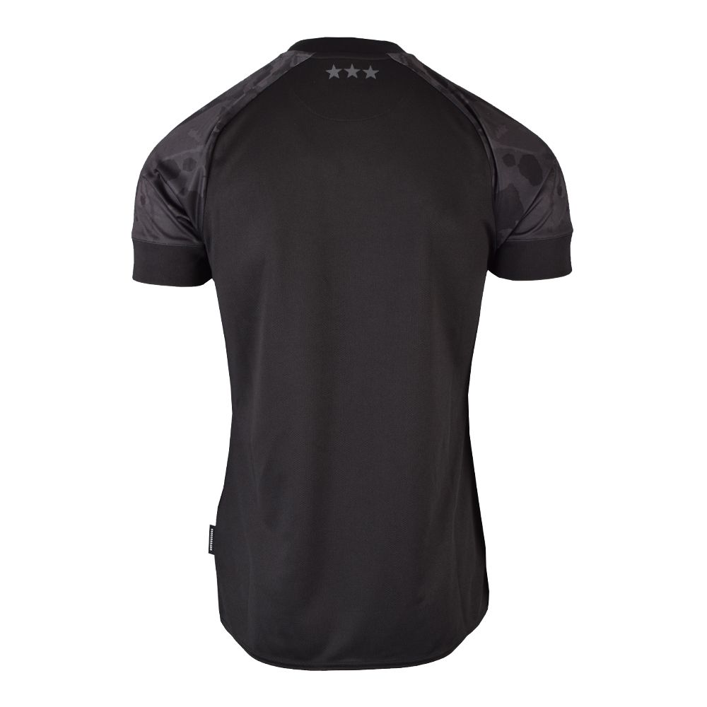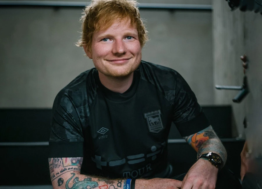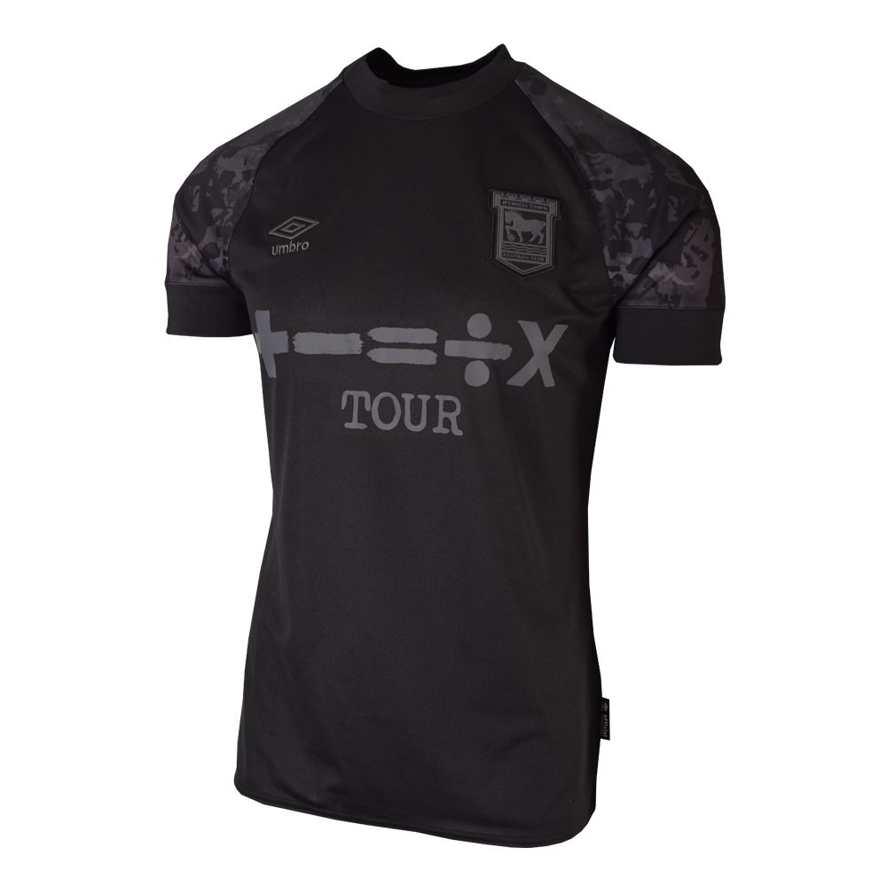 The shirt, which has been designed in collaboration with Ed Sheeran, is a blackout style with unique sleeves and short panel styling.