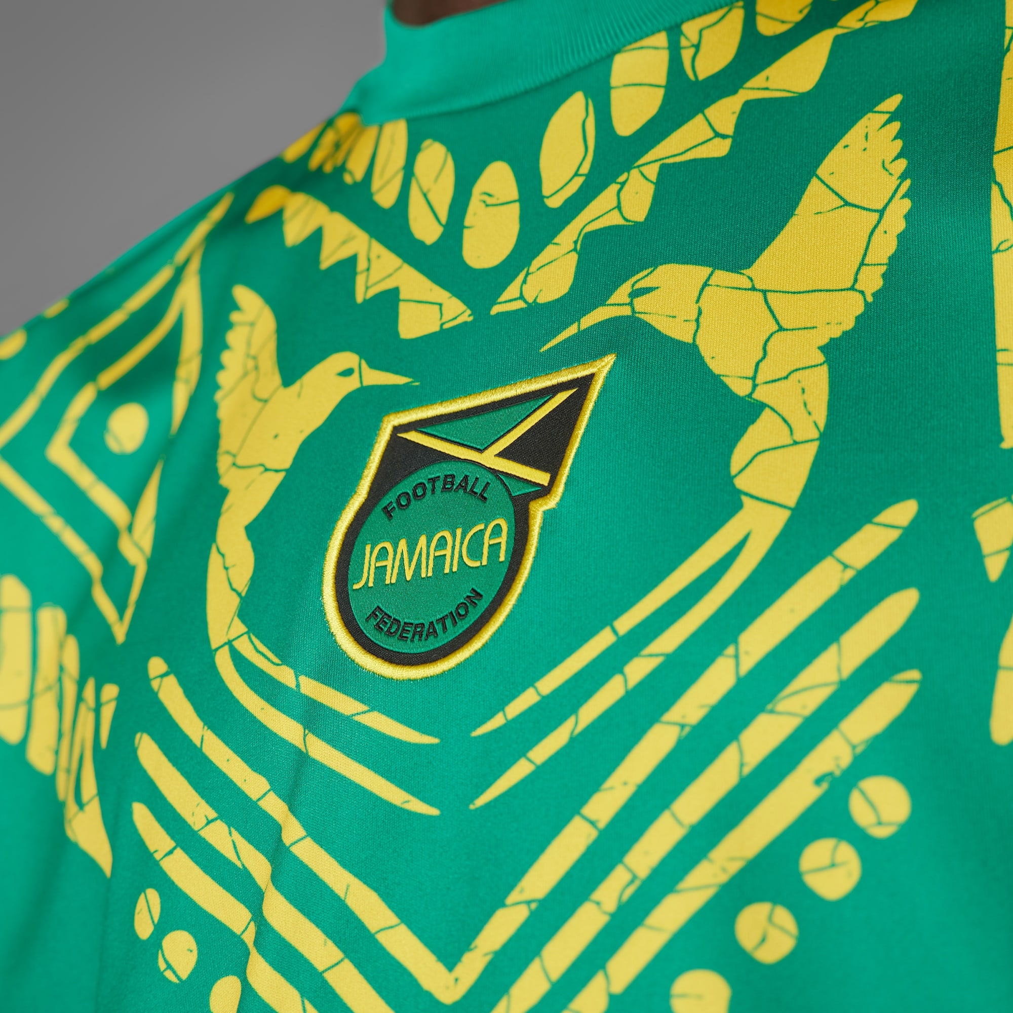 This new 2024 “Pre-Match Jersey” for Jamaica has been unveiled by the Reggae Boyz’s supplier adidas.