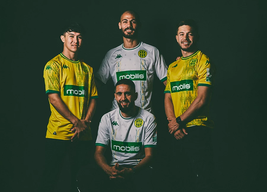 The new Kappa primary release features the famous “Canary” colours of yellow and green, with the latter embellishing the former by way of Berber patterning, and the white introduced by the “mobilis” [sic] main sponsor provides the main fill of the similarly decorated change, which has green and yellow secondary and tertiary tones along with grey.