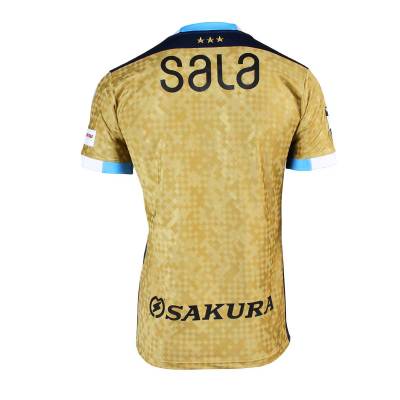 In gold with embellishment in sky blue, navy and white, and partner logos in black, the 2023 release from Admiral celebrates the side’s first promotion to Japan’s J1 League in 1993, to play the 1994 season in the Japanese top flight.