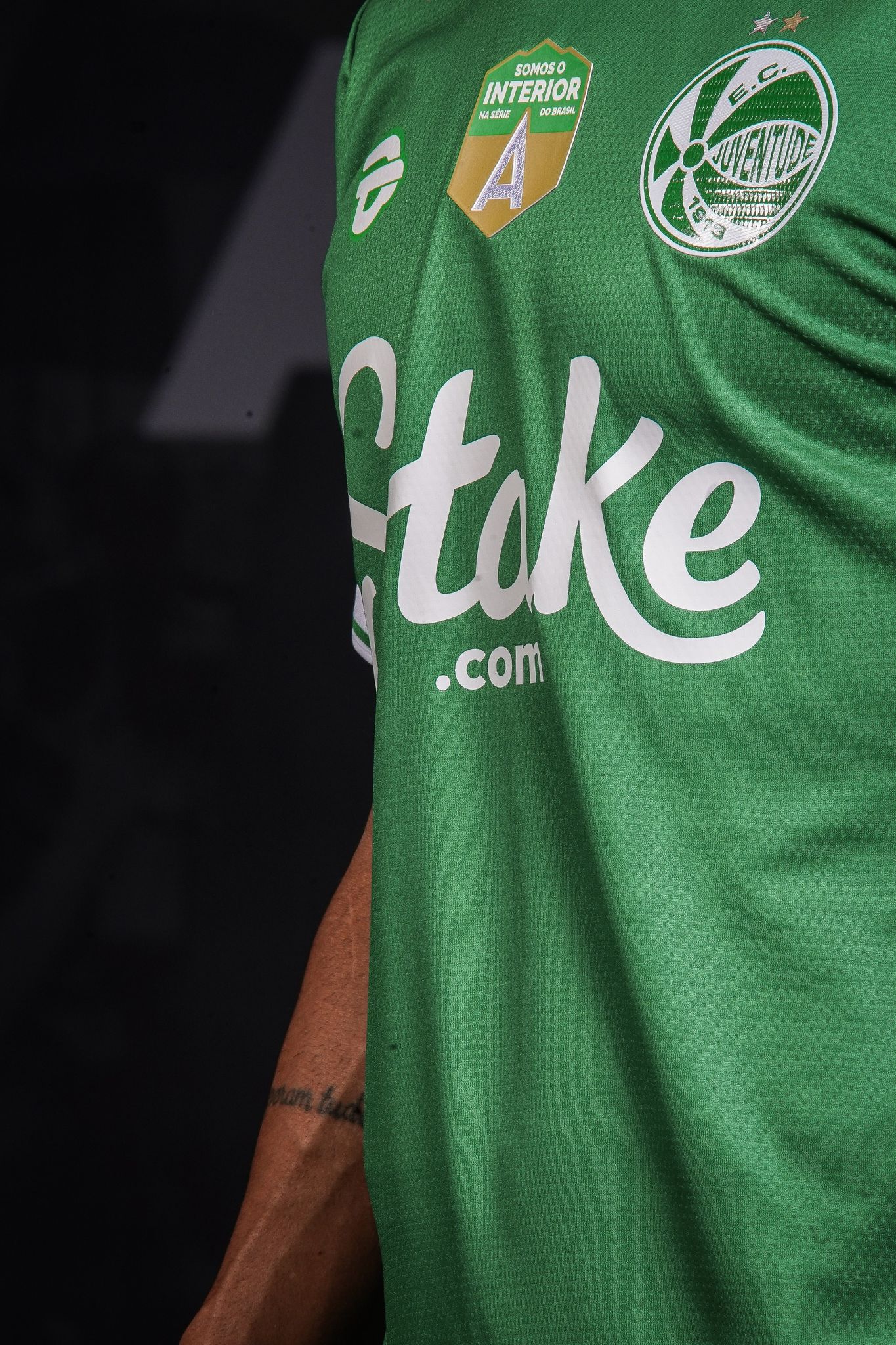 The green 2024 secondary-change design references 1970s shirts worn by the Caxias do Sul-based side, nodding to the period that included their ascension to the top tier of Brazilian football with the “somos o interior na Série A do Brasil” script.