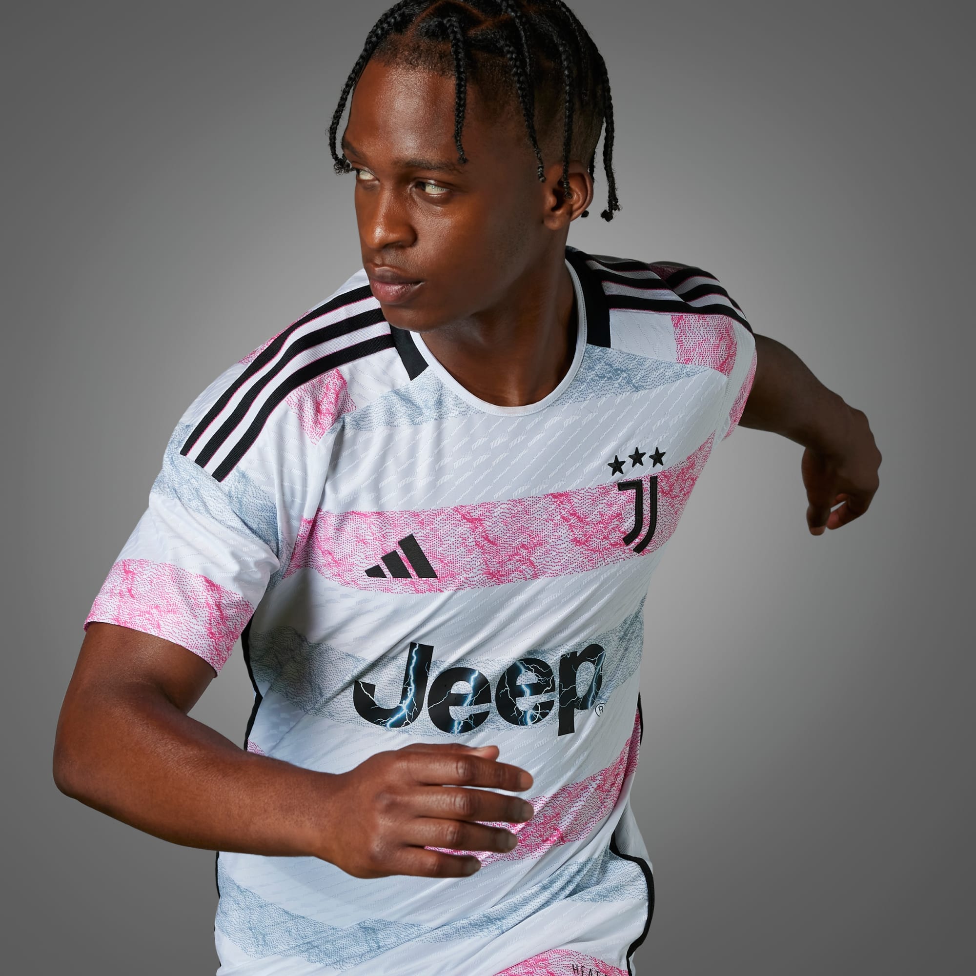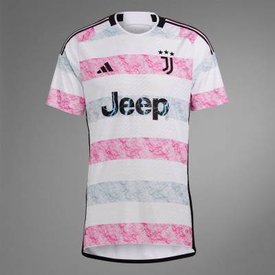 This new jersey marks a departure from previous designs, presenting a predominantly white aesthetic that reflects the snow-capped peaks in the Italian Alps. The grey stripes and iconic Juventus pink create a rugged texture, mirroring the rocky cliff face of Monte Rosa that graces the skyline of Turin.