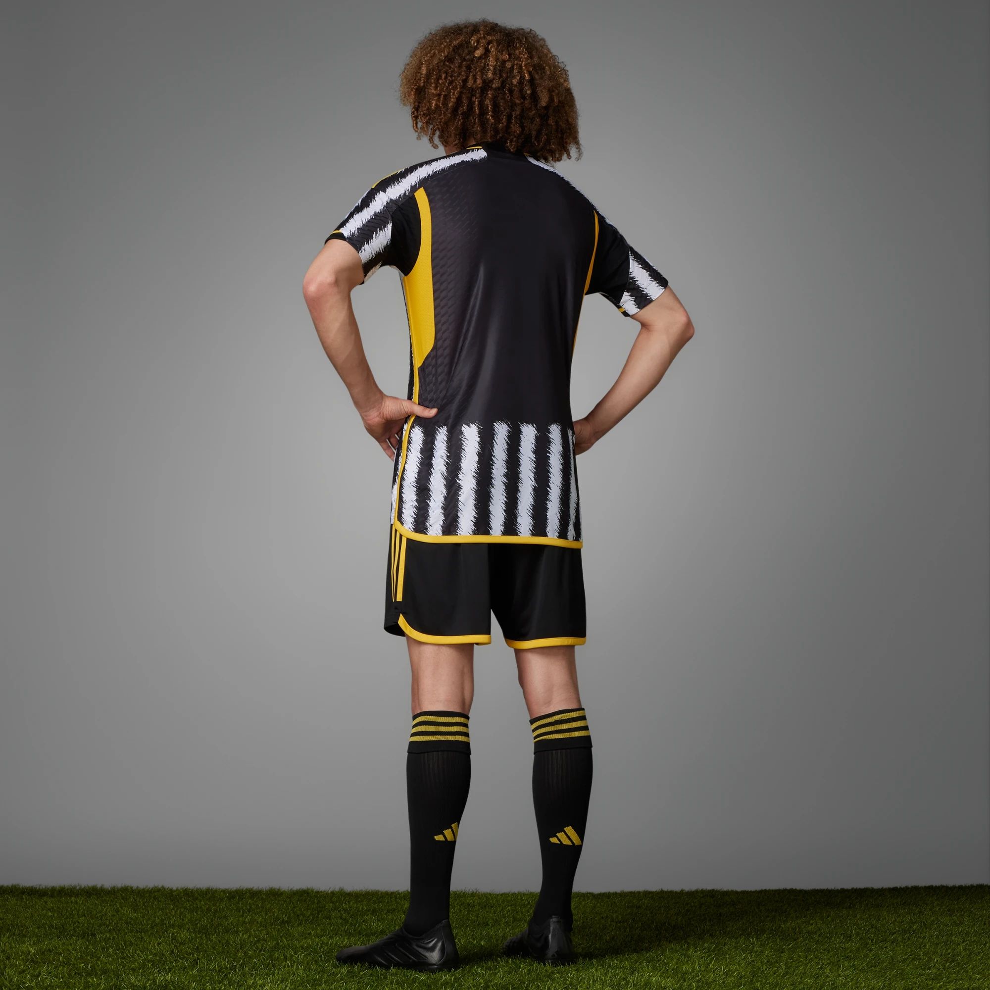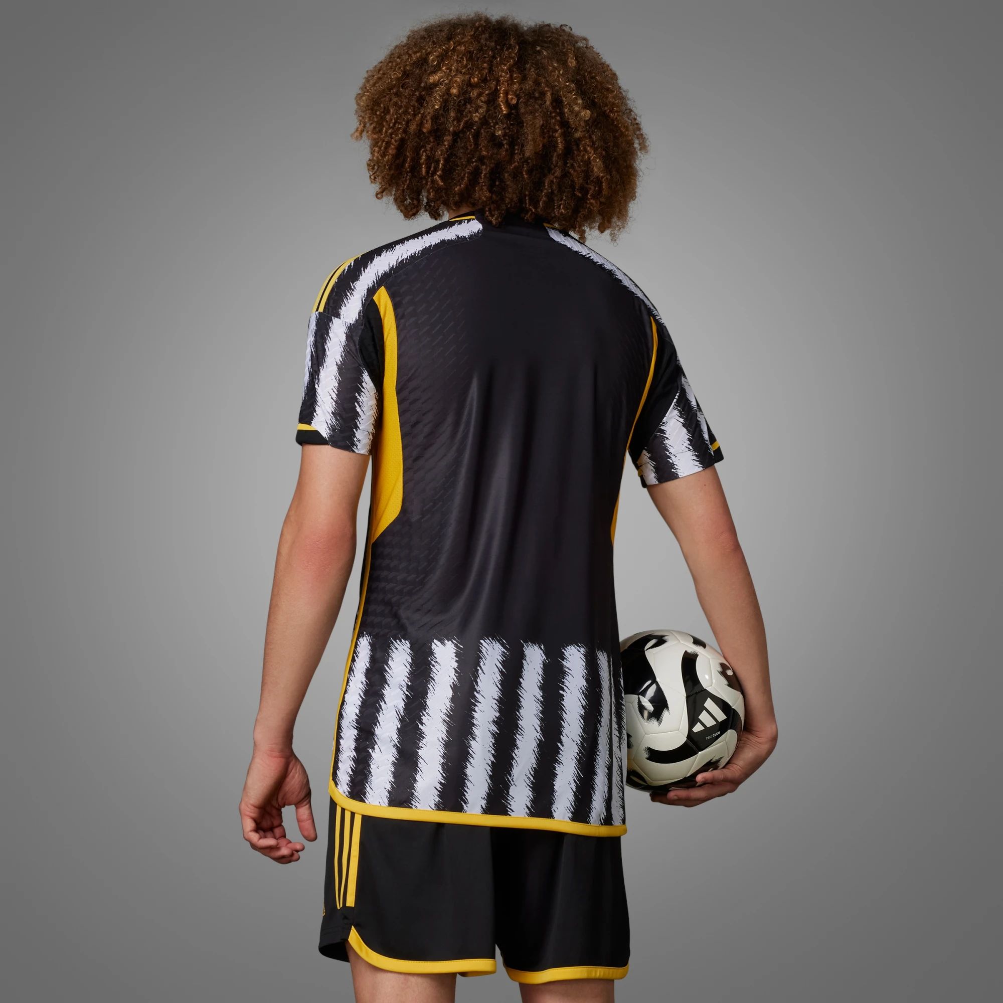 The shirt celebrates the iconic black and white stripes of Juventus, taking inspiration from the season 2022/23's triangular pattern and retelling it with a brushed stroke finish that emulates the distinct patterning of a zebra.