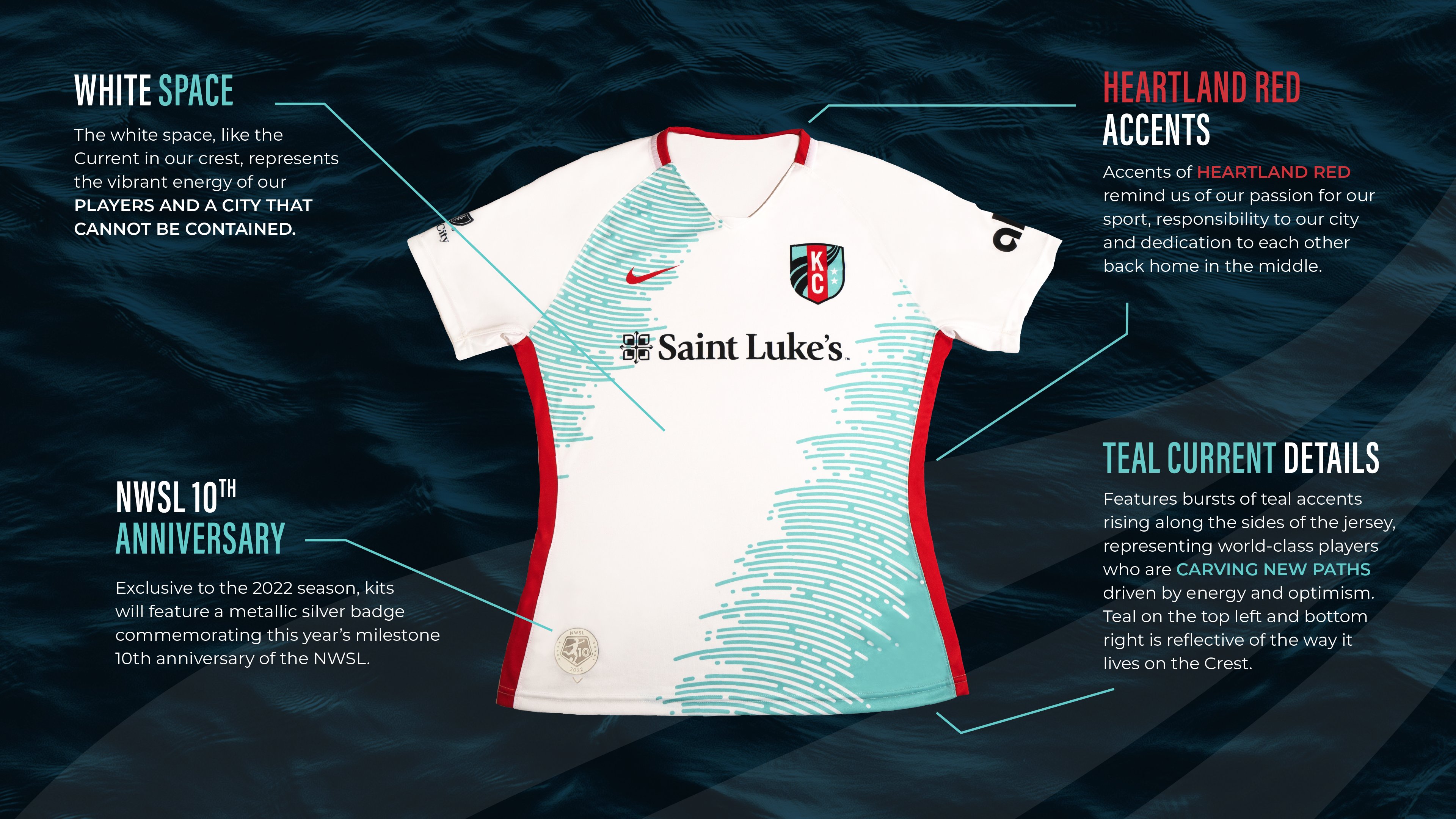 The club’s sponsors are prominently featured on the kit, including Saint Luke’s Health System emblazoned across the front, Palmer Square Capital Management on the back and Blue Cross Blue Shield of Kansas City on the sleeve.