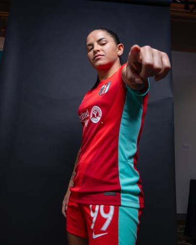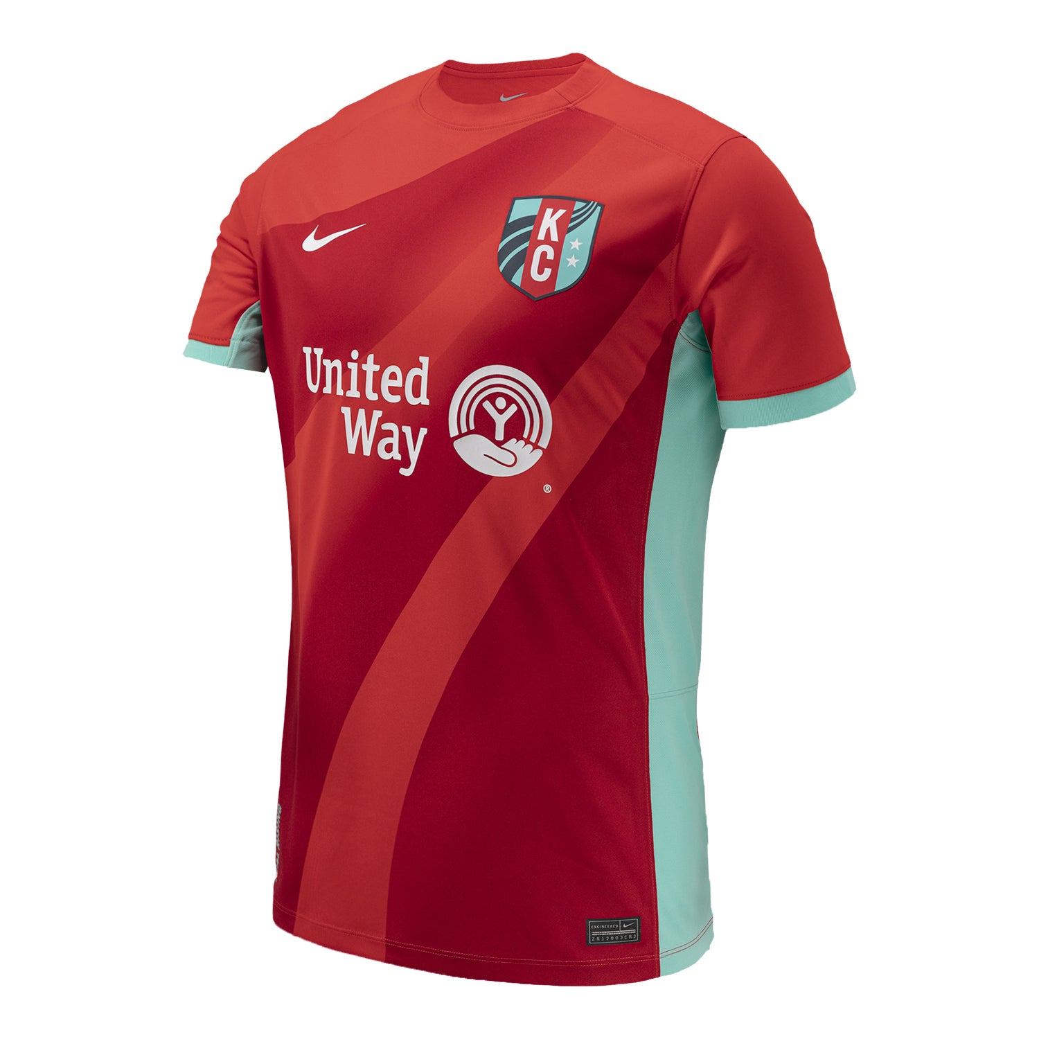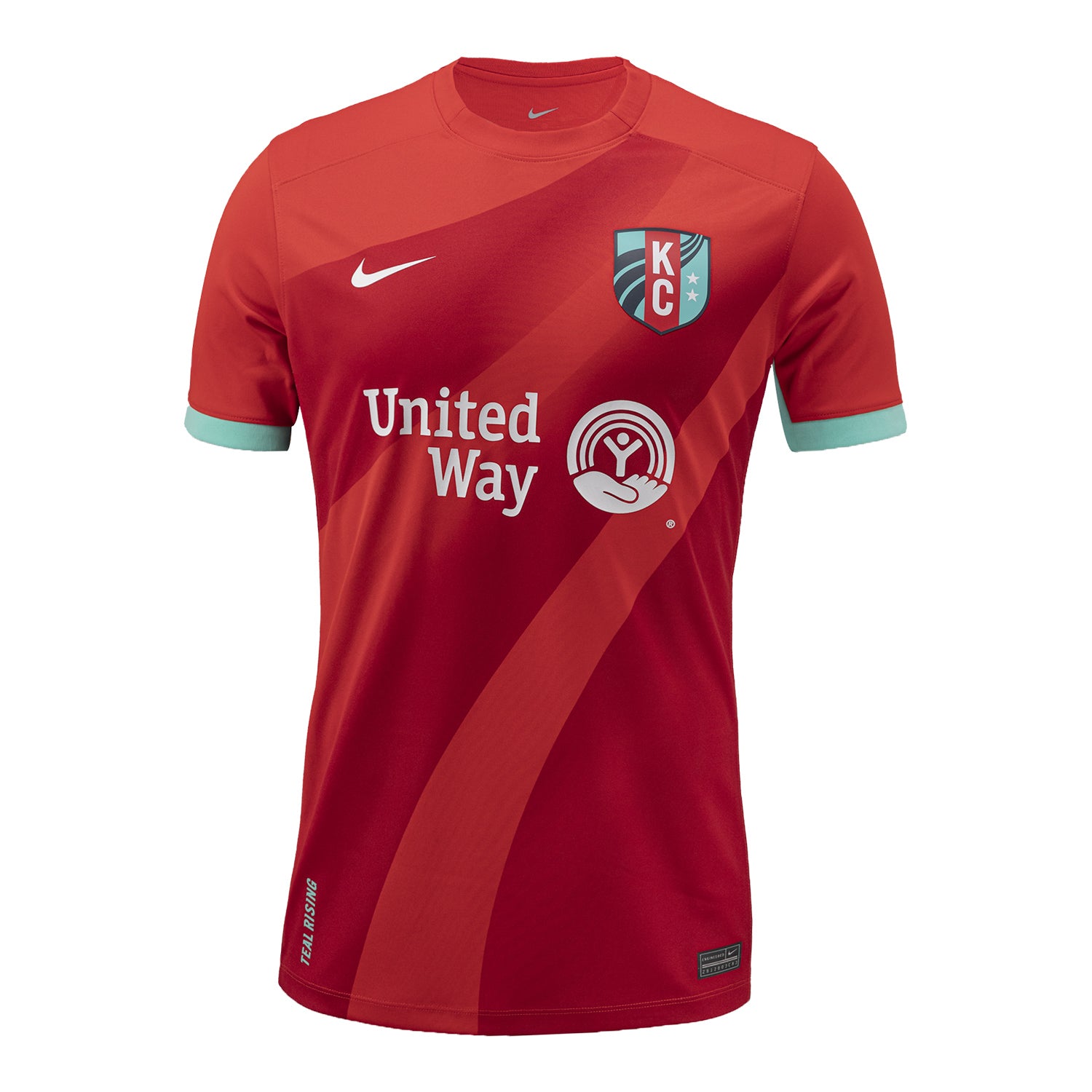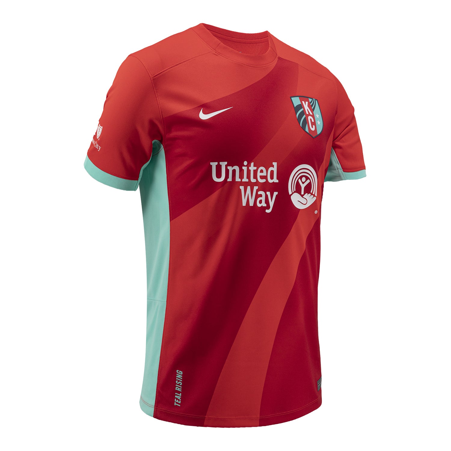 The “Primary Jersey” is being marketed as honouring the National Women's Soccer League (NWSL) side’s young CPKC Stadium home, with the Missouri river stylings on the red shirt - aping the look of the crest - augmented with the teal on the sleeve cuffs and the change (“Secondary Jersey”) seeing teal merging into white with a diagonal-gradient effect.
