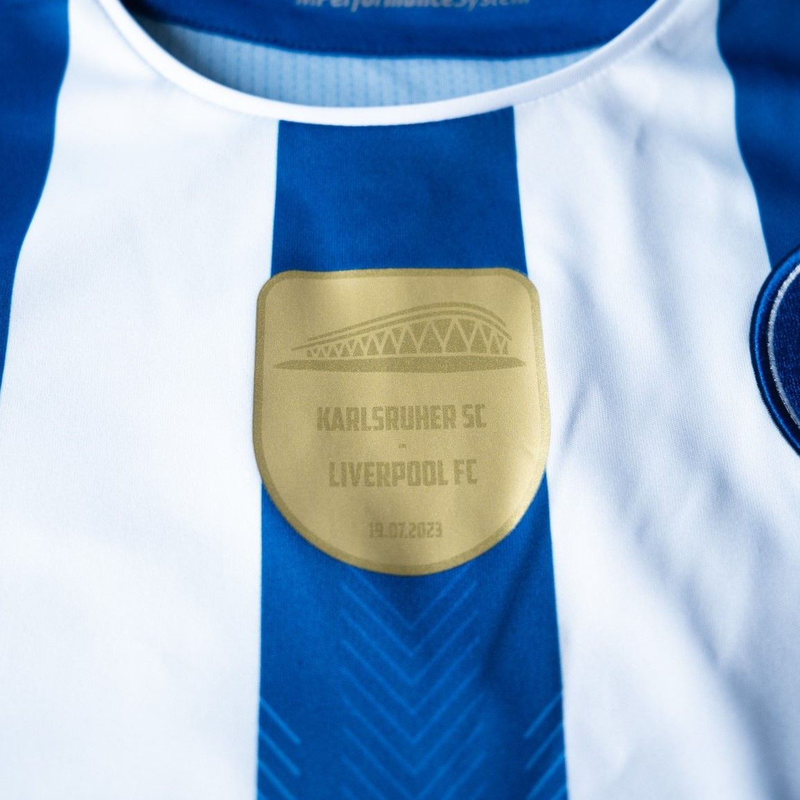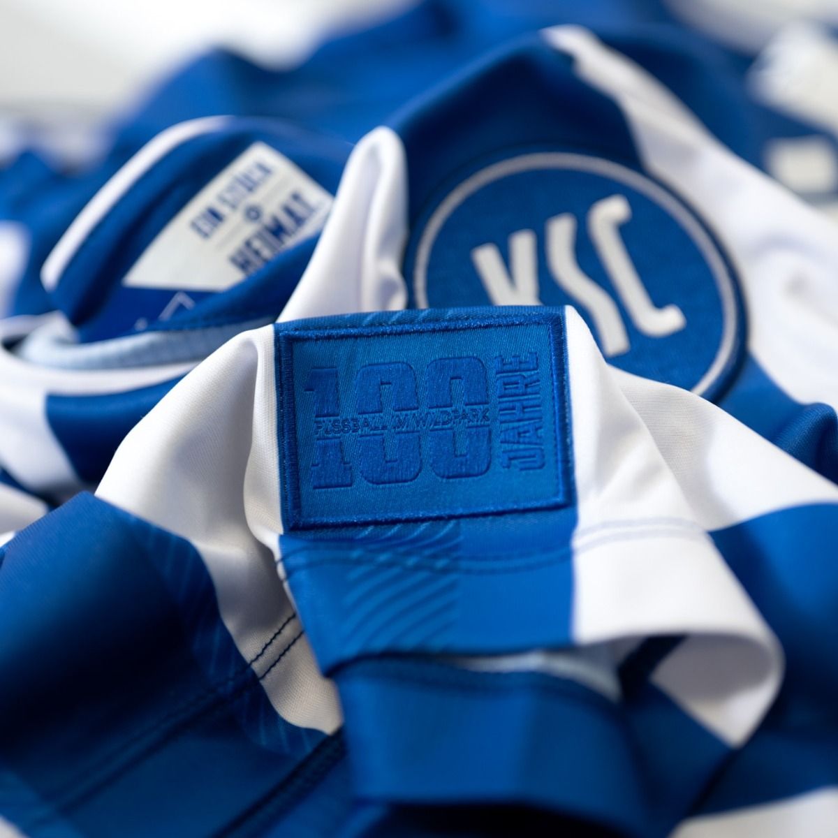 With stylised blue-and-white striping, the Karlsruhe-based German 2. Bundesliga club’s new primary release from Macron also boasts plain blue sleeves and a plain blue back, with the crest in standard form and a discreet patch (housing an NFC chip) that references 100 years of “KSC” football being played at the “Wildpark” where the current stadium stands.