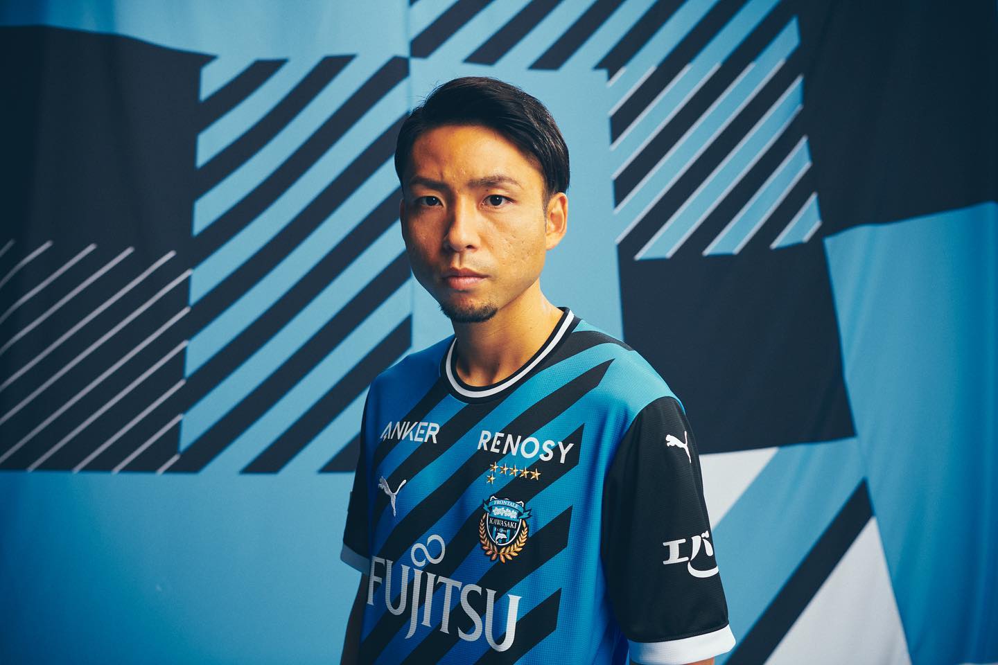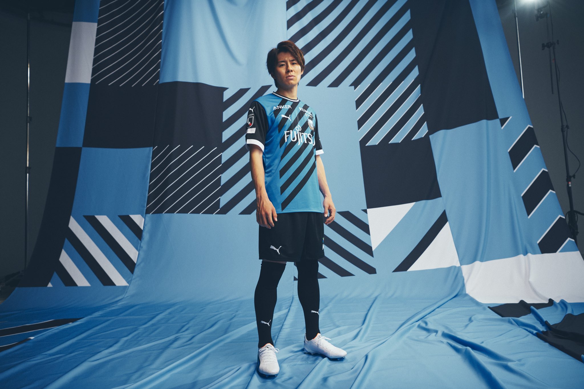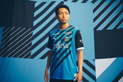 Nodding to releases from the past, the stripes represent the seven wards of the city of Kawasaki, and the shirt, with its black sleeves, will be combined with black shorts and socks as first choice in Japanese J1 League matches.