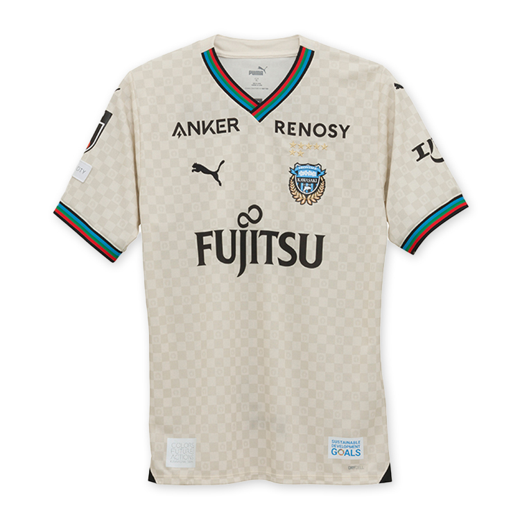 Celebrating the 100th birthday/anniversary of the city of Kawasaki - established in 1924 - rather than the club, the new off-white primary-change design for 2024 boasts a chequerboard pattern incorporating the city’s seal.