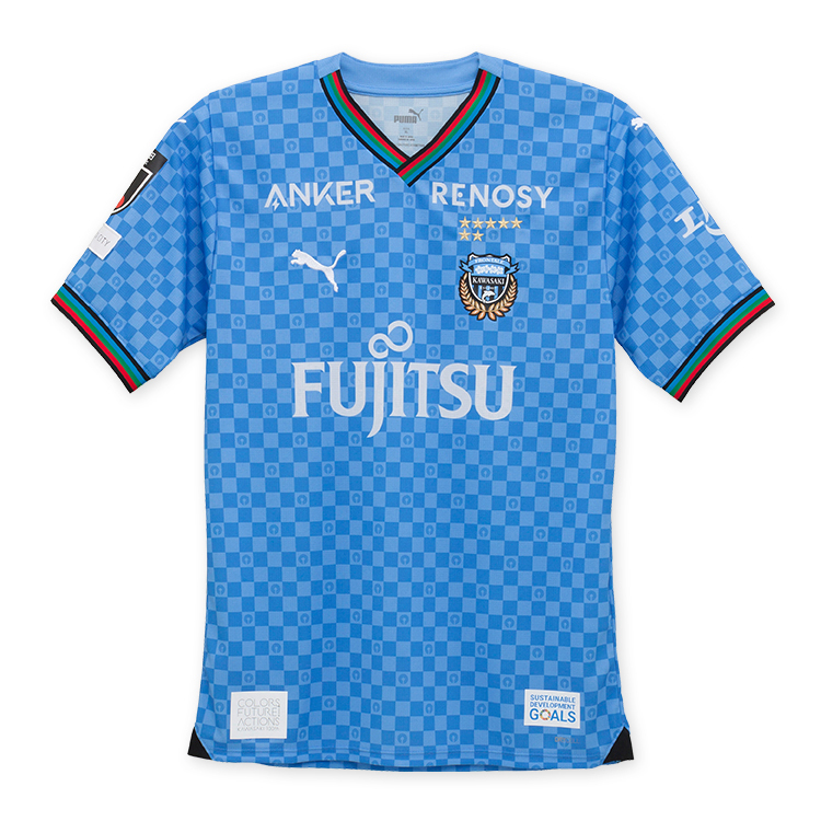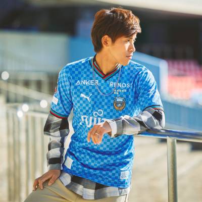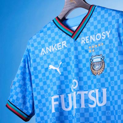 Celebrating the centenary of the club’s Kawasaki home - established in 1924 - the design, in tones of blue, nods to the release of 2014 with a chequerboard pattern featuring the city’s seal.