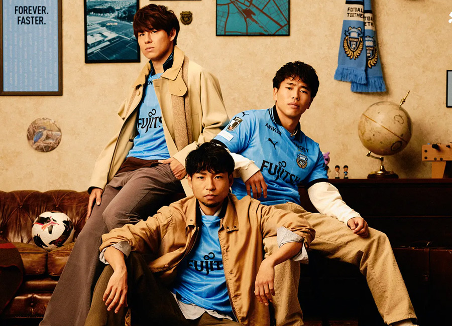 The new Puma primary release from the “KAWASAKI BASED” launch is in sky blue and black with subtle striping including coordinates of Frontale-related landmarks in the club’s Kawasaki City locale, while the change is white with sky blue and black.