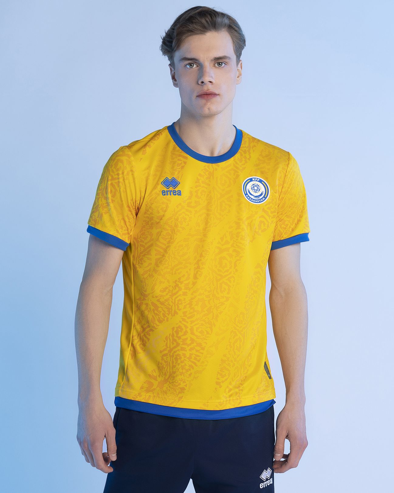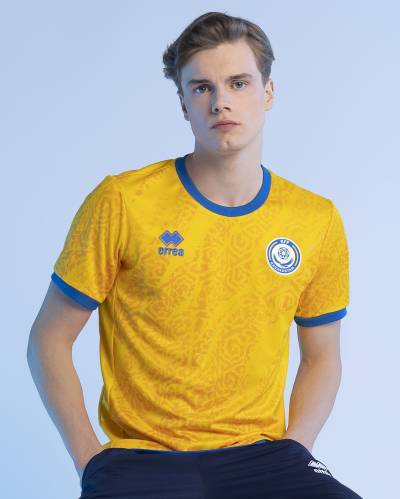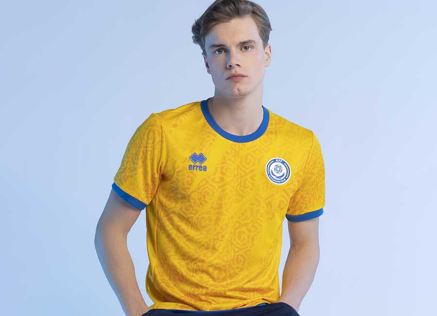 The Erreà designs, courtesy of the UEFA Kit Assistance Scheme 2022-2026, consist of a yellow first-choice release, a blue primary change and a black third, all featuring an interpretation of traditional Kazakh patterning.