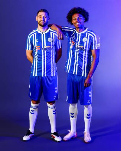 The kit includes blue shorts and white socks featuring Hummel’s signature chevrons, and retains sponsor placements from James Frew, Red Rock, Blackwood Plant Hire, and A&L Mechanical.