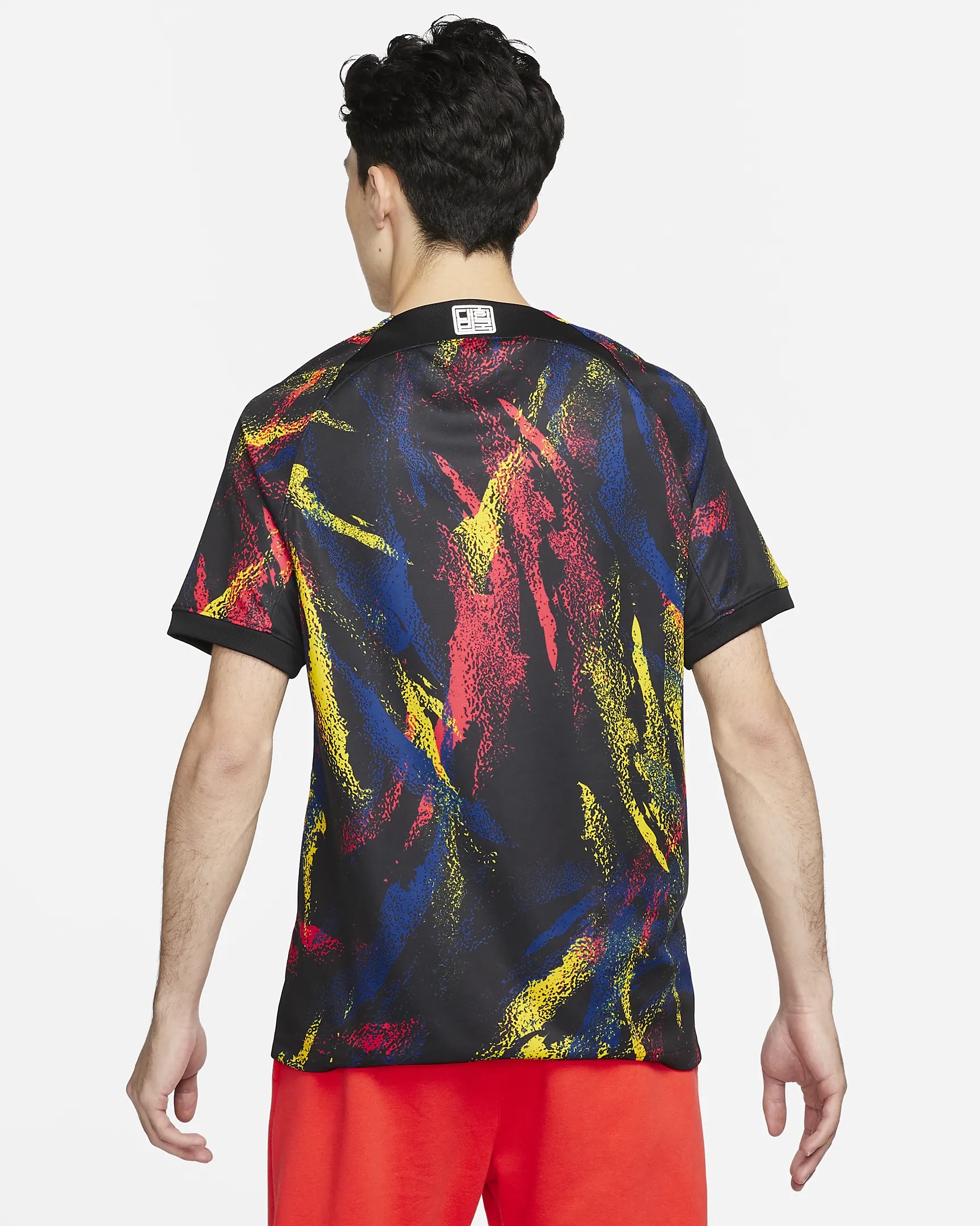 The 2022 design, which will be packed ready for action at the Qatar 2022 World Cup, combines a black base with multicoloured brush-stroke-style graphical embellishment.