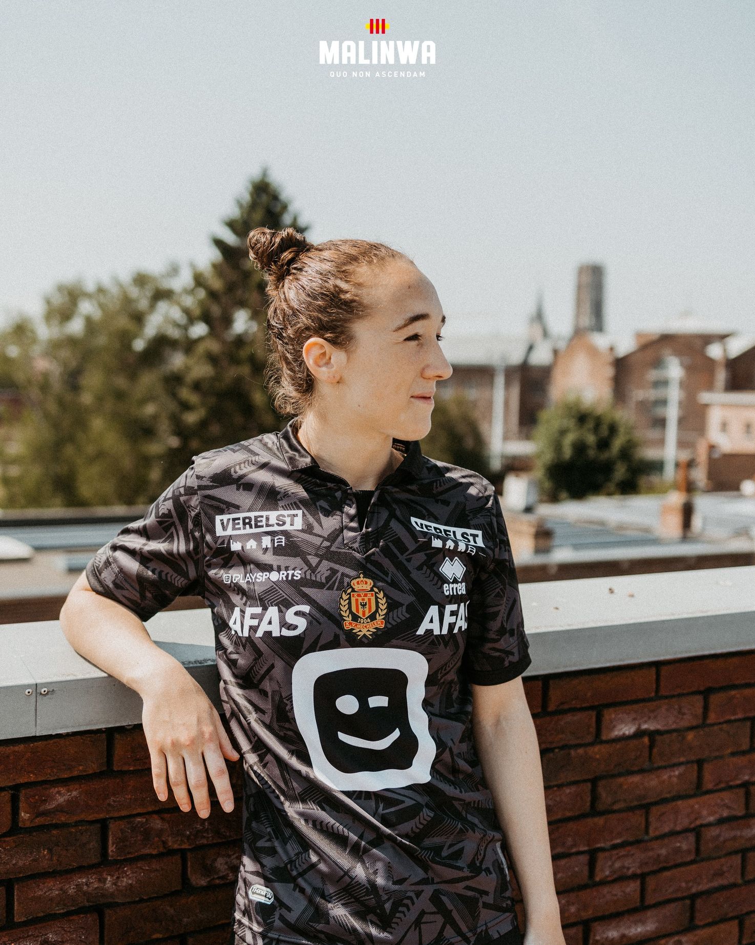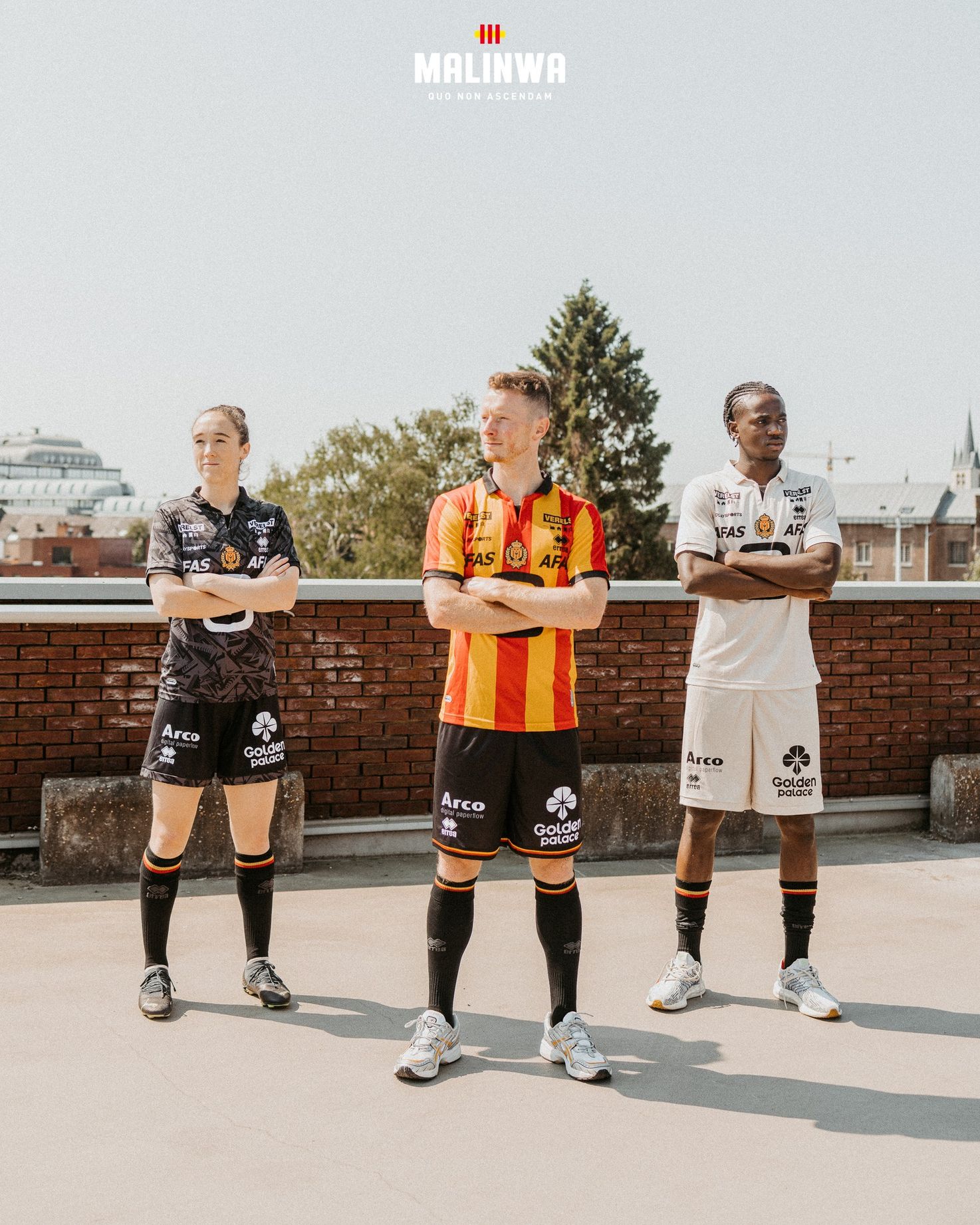 The Belgian Jupiler Pro League side’s new Home shirt is in the famous yellow and red, with black collar, cuffs and detailing, the Écru Away is also embellished with black, and the Black Away (third) features elaborate patterning in greyscale with white.