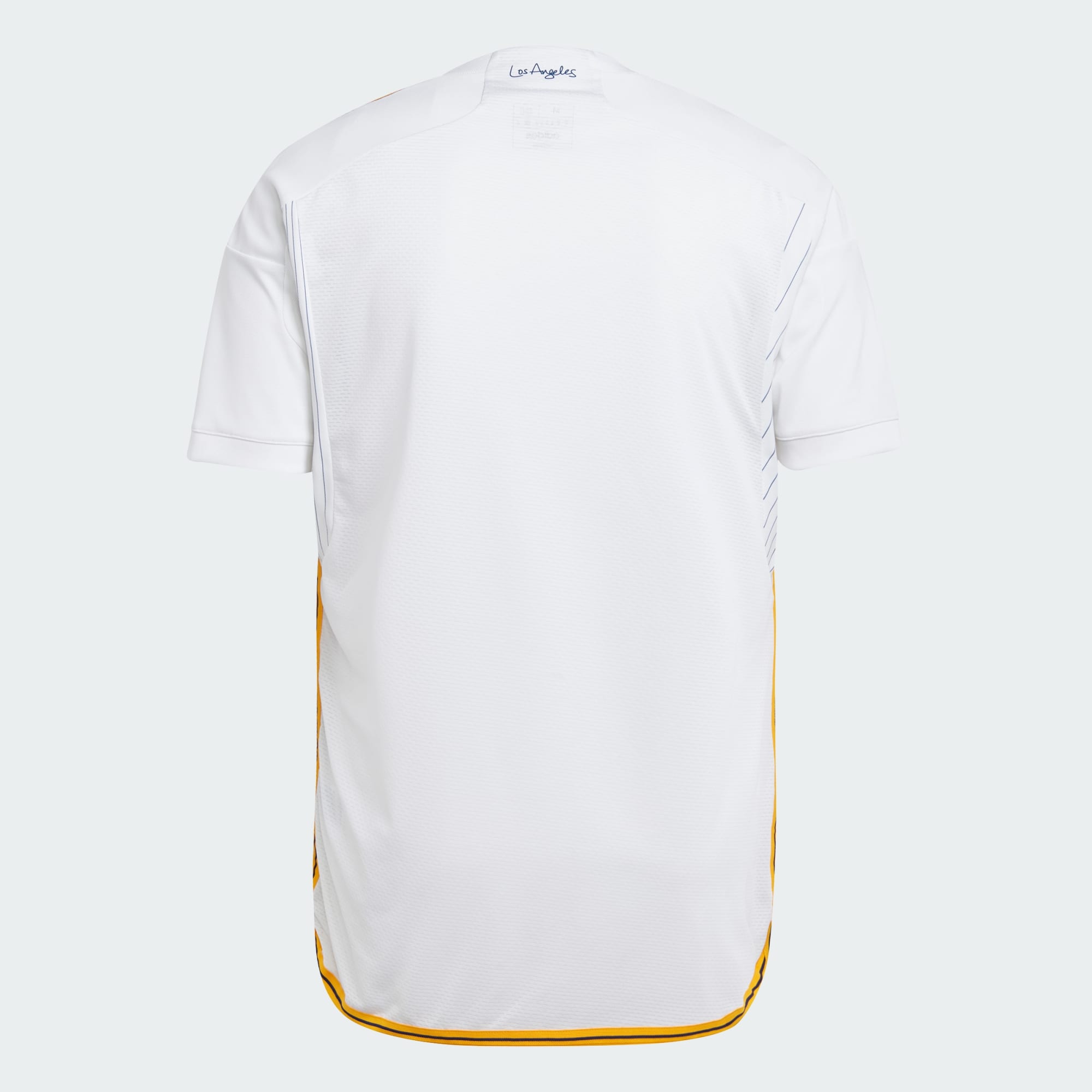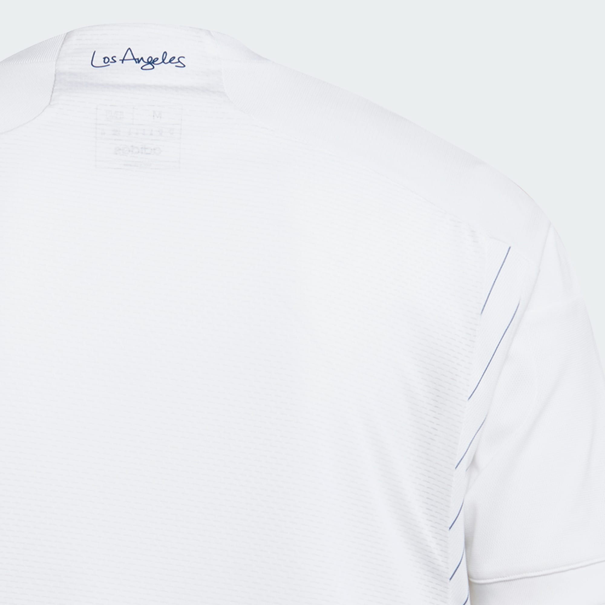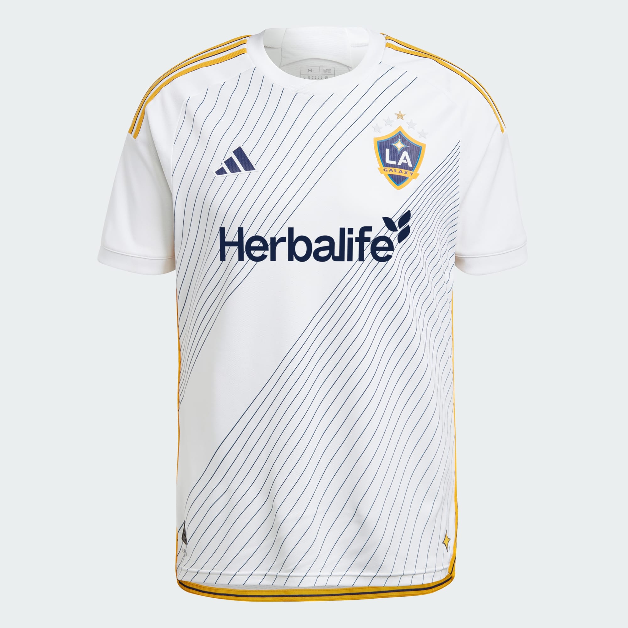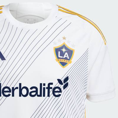The back collar of the jersey bears a Los Angeles tag, written in script by the fans, adding a personal touch to the design. The 2024 home kit proudly displays five stars above the team's crest to celebrate LA Galaxy's five MLS Cup victories. It continues to sport the Herbalife logo, marking the longest-running shirt sponsorship in MLS, and introduces the Apple TV logo on the left sleeve as the new league-wide streaming partner.