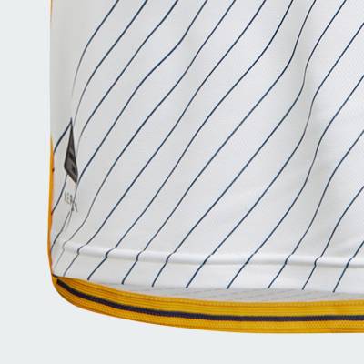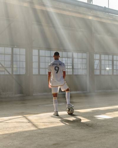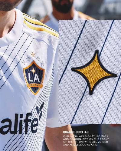 This jersey, inspired by the spirit of Los Angeles, takes a modern approach to the classic sash design, symbolising speed, progress, and the city's innovative essence. The design features dynamic lines that converge with the quasar, LA Galaxy's emblematic symbol, on the front, signifying the unity of Angelenos.