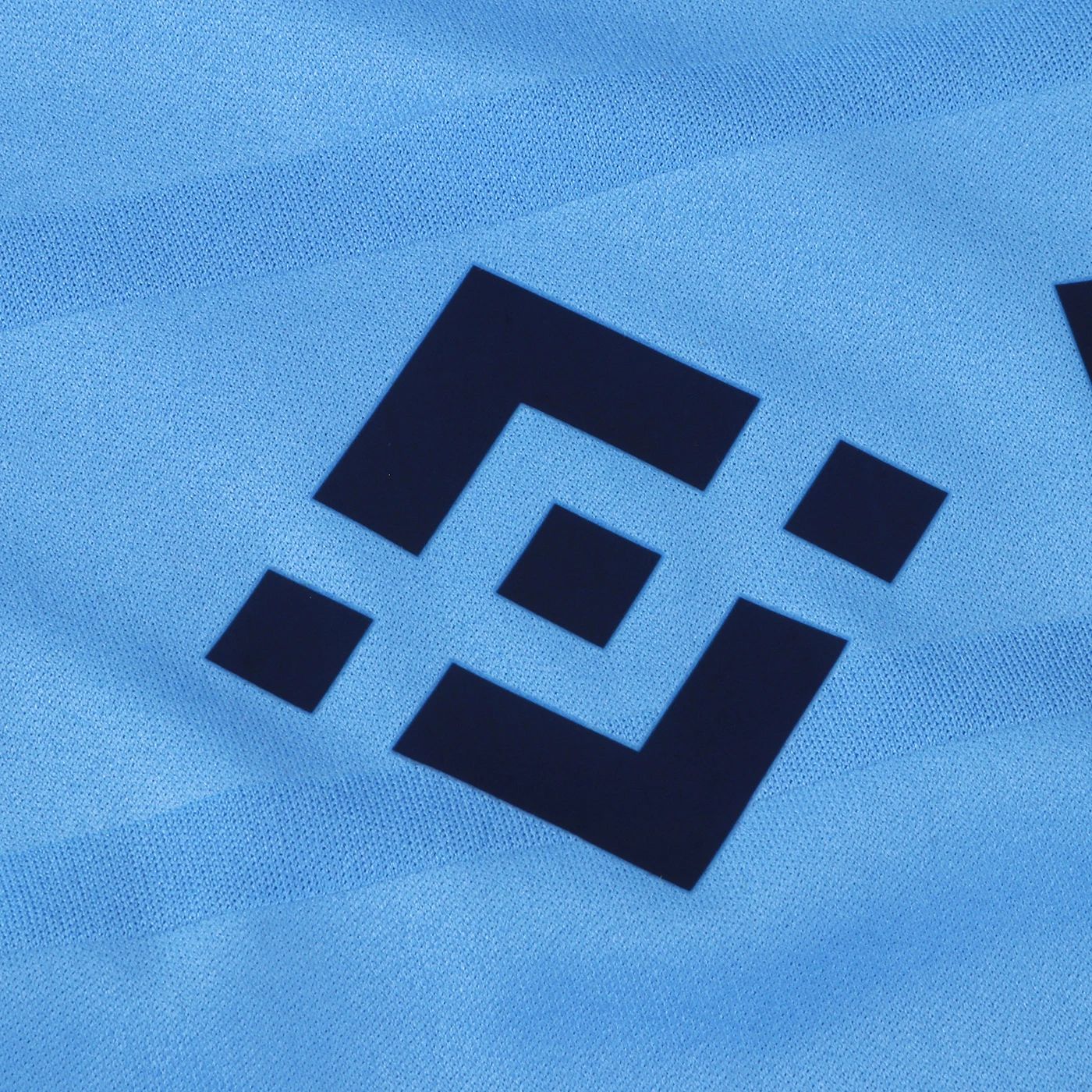 Completing the kit, which has been launched with the logo of “Binance” in the central sponsorship position, the shorts and socks which will be worn with the shirt are in, respectively, white and sky blue.