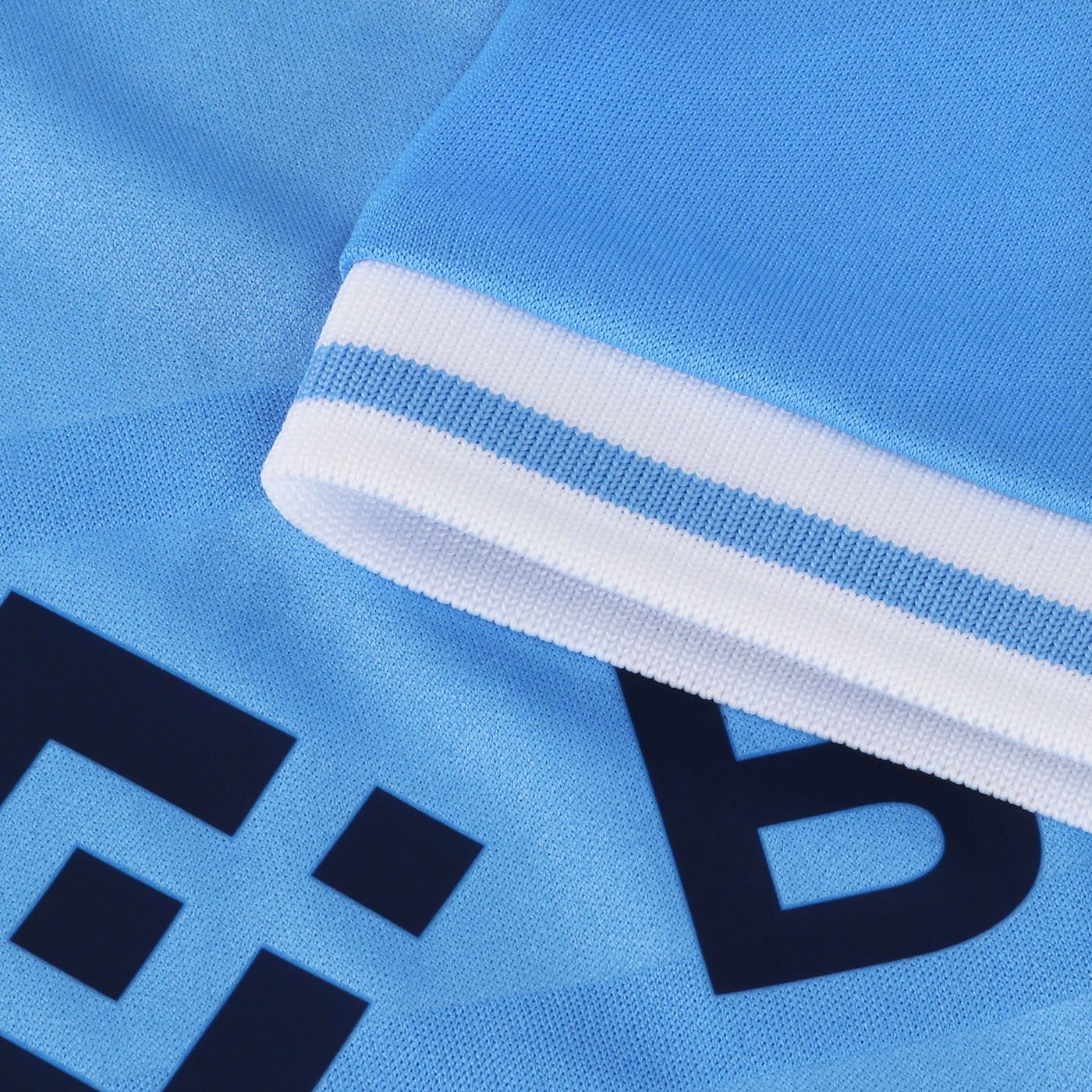 In sky blue with a full-colour crest and a navy abstract logo to represent the Japanese brand, the 2022-23 design is finished off with a neat crew neck and cuffs in white.