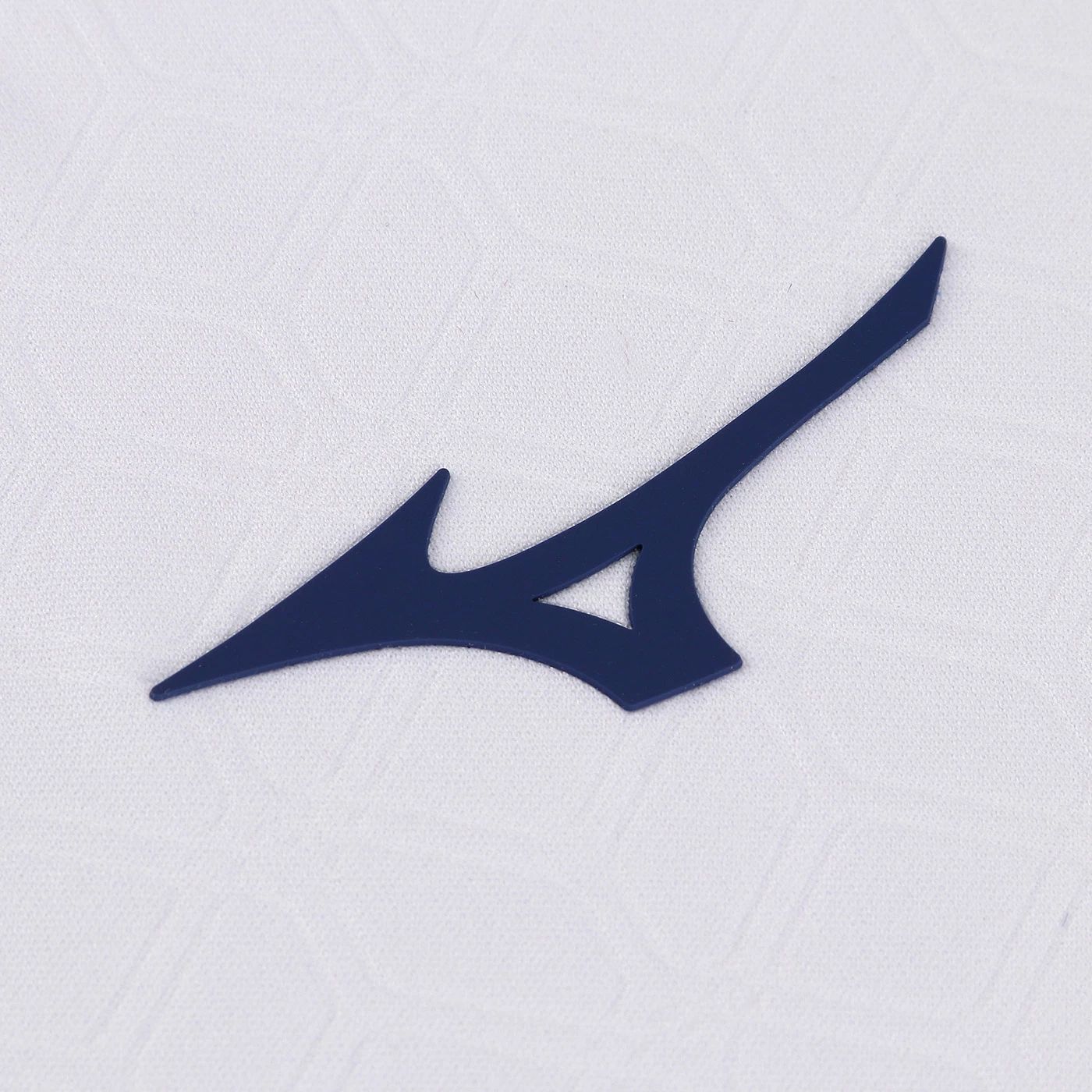 Combining a white trunk with deep-blue sleeves, the Japanese manufacturer’s branding contrasts in said deep blue and, on the sleeves, white.