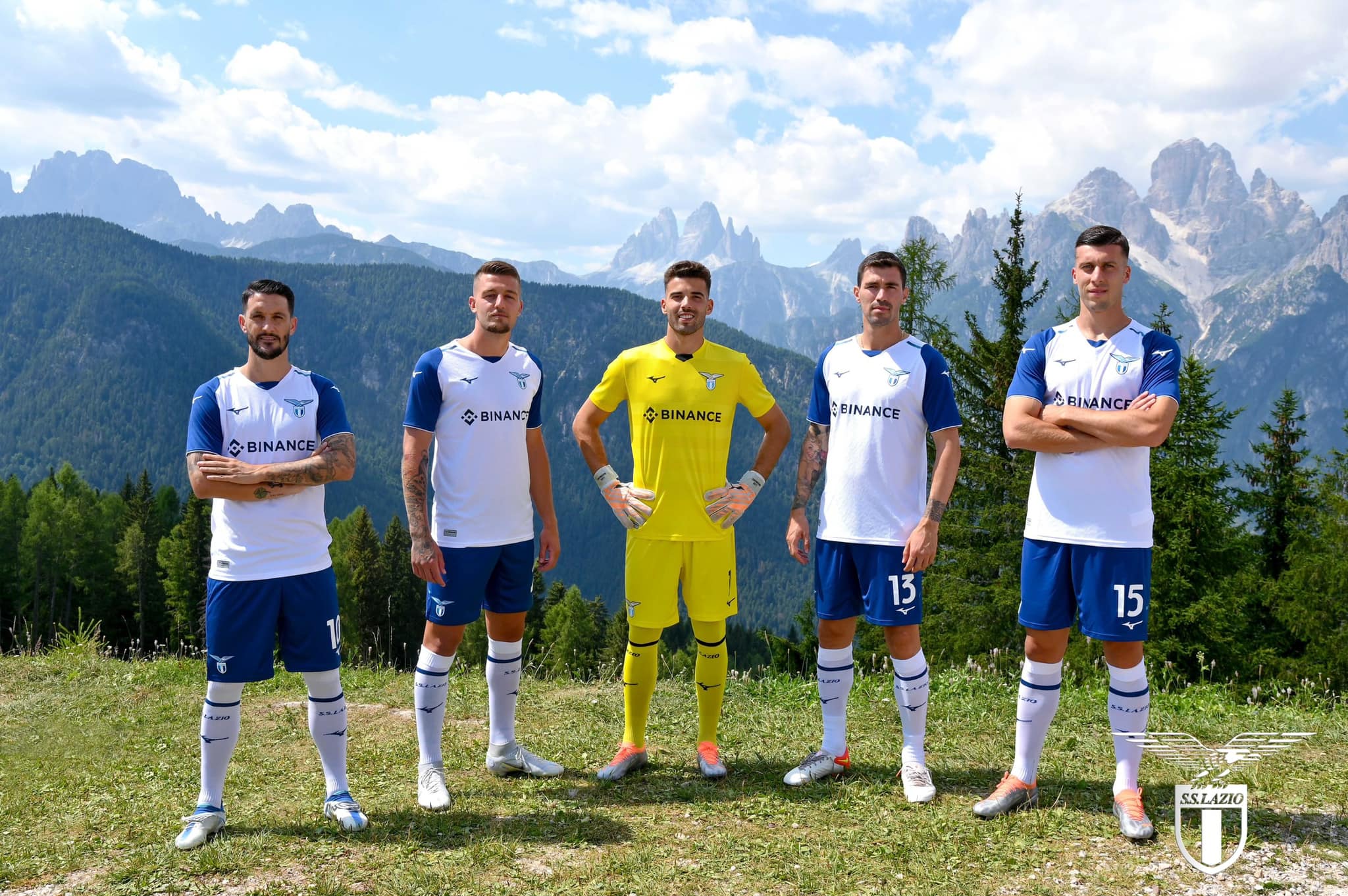 The crest detail is in tones of blue gradating - a trick repeated on the “S.S. LAZIO” script on the upper back - and the “Binance” main-sponsor logo is in navy.