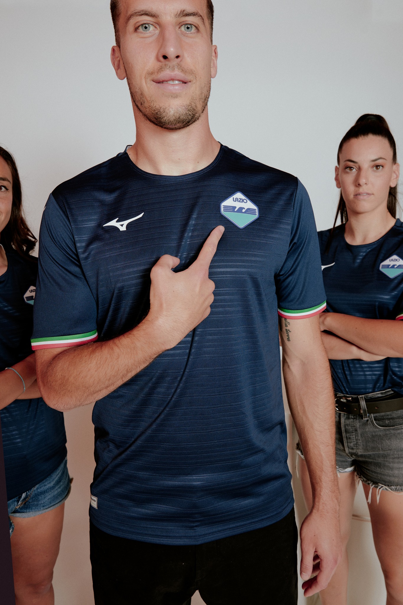 The Mizuno Away kit draws inspiration from the Italian flag and commemorates the 50th anniversary of S.S. Lazio's first Scudetto triumph.