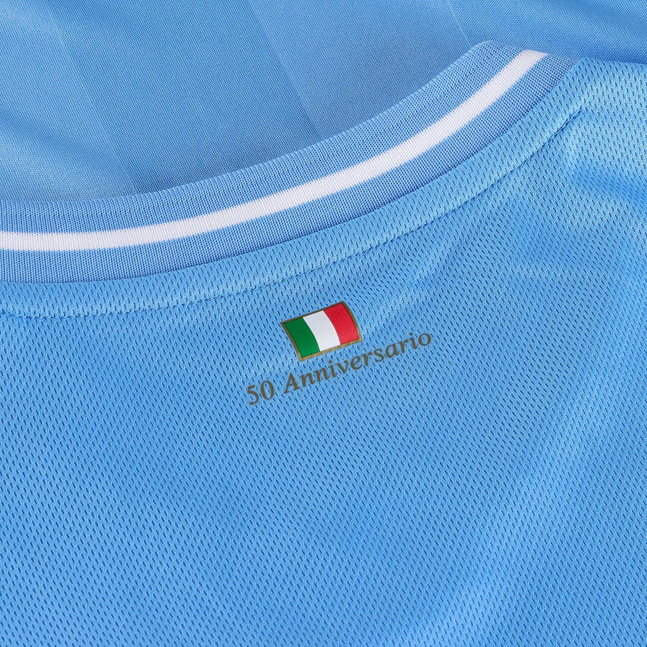The inspiration behind the Mizuno Lazio Home kit comes from the 1973-74 kit, celebrating the 50th anniversary of S.S. Lazio's first Scudetto victory.