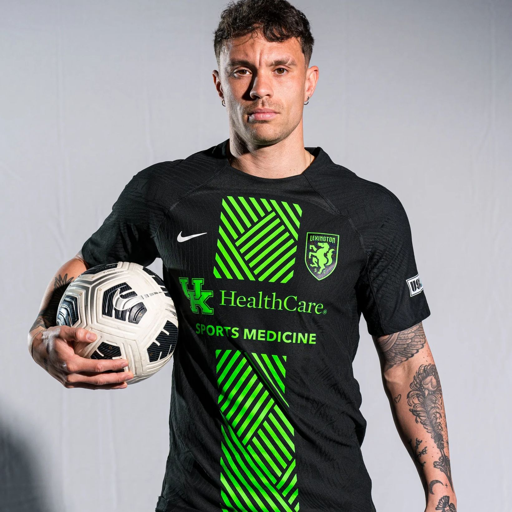 The US supplier’s “Swoosh” logo is in white and the Kentucky-based USL League One side’s first-choice kit is completed with black shorts and socks.