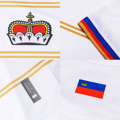Each shirt, through the striping, nods to the various locales that combine to make up Liechtenstein and the kits will be completed with complementing shorts and socks.
