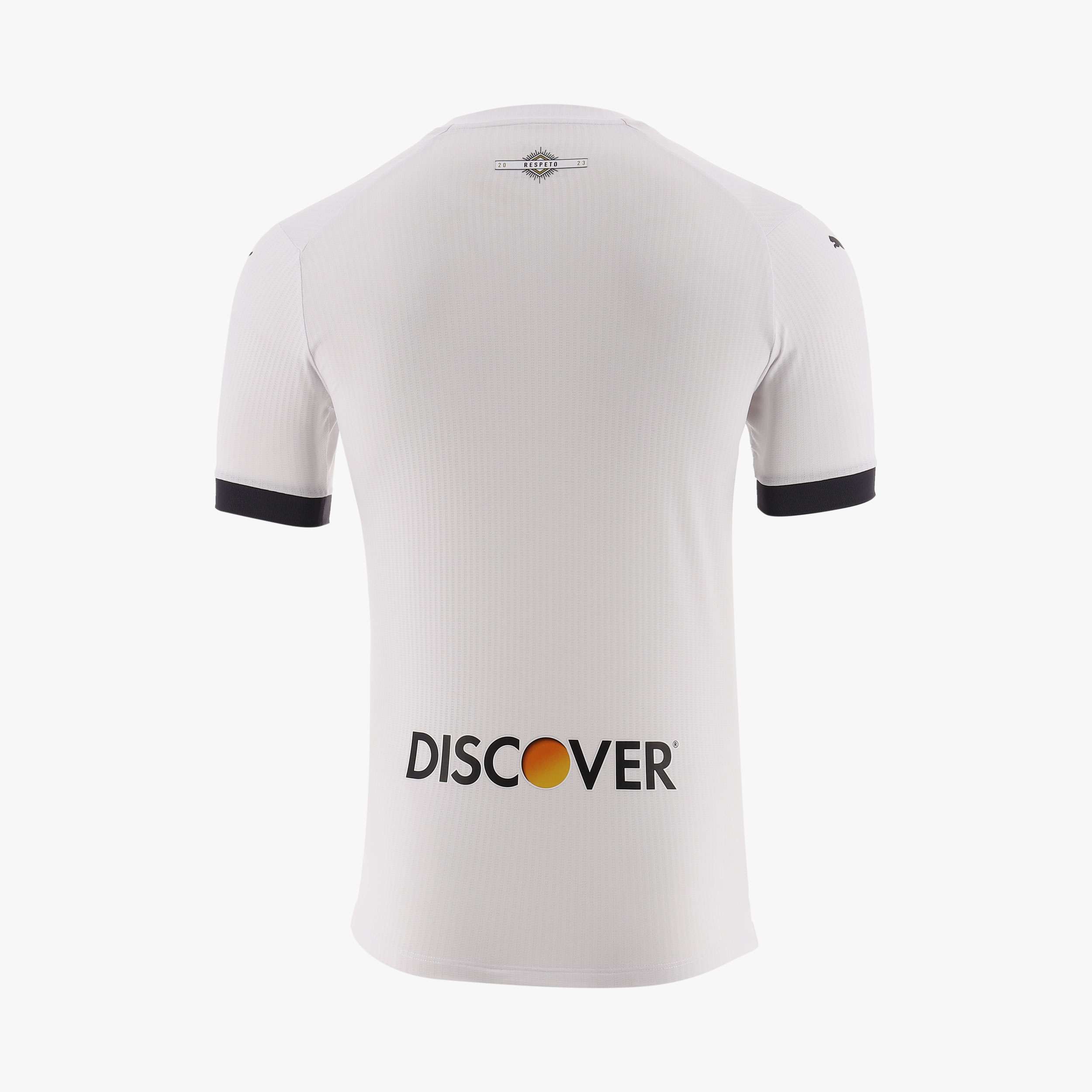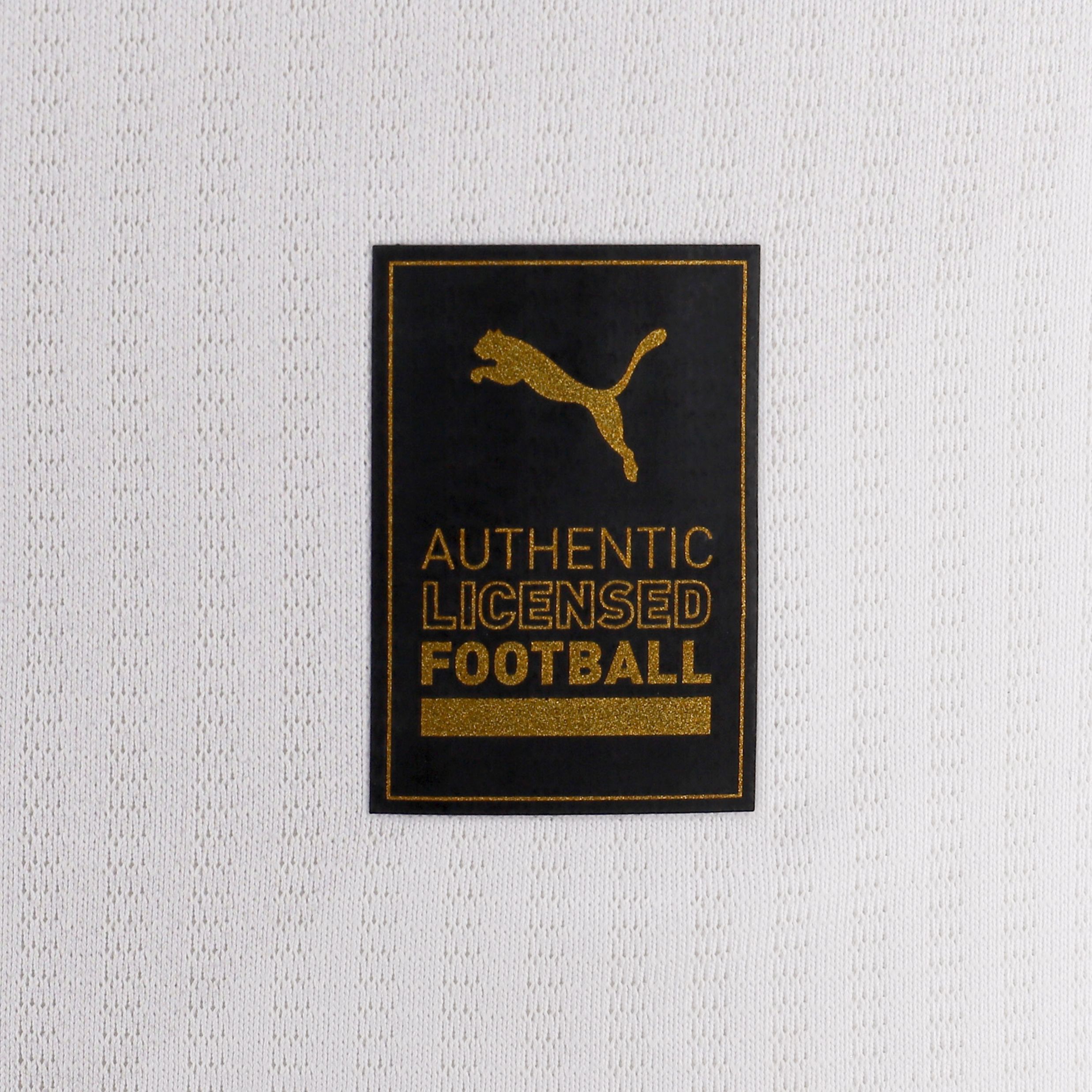 The home version retains its traditional white colour and is complemented by a full-colour crest that brings vitality to the upper part of the shirt.