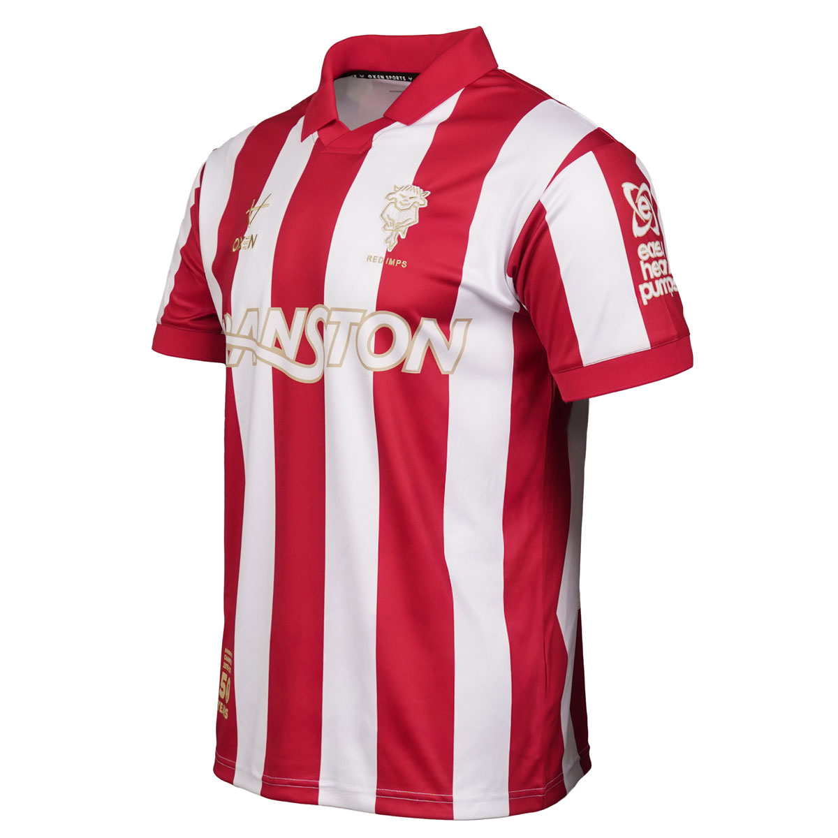 The new Lincoln City football Shirt forms part of a wider commemorative range, which also includes a green goalkeeper shirt, warm-up t-shirt and walk-out jacket.