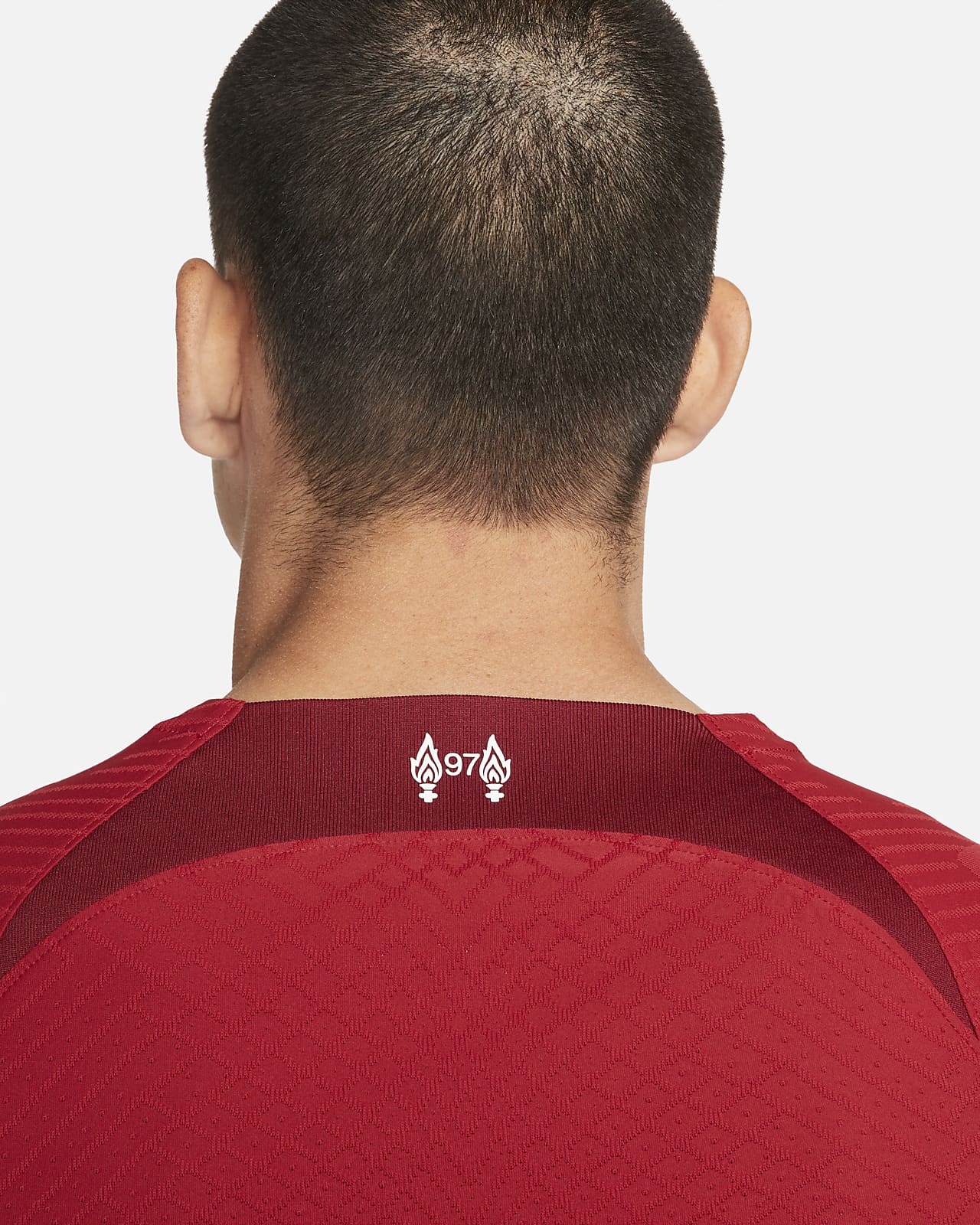 On the reverse of the jersey, the 97 emblem encased by the Eternal Flames sits proudly at the nape of the neck in memory of the children, women and men who lost their lives in the Hillsborough tragedy. The change from 96 to 97 is in recognition of Andrew Stanley Devine, the 97th person unlawfully killed as a result of the Hillsborough disaster.