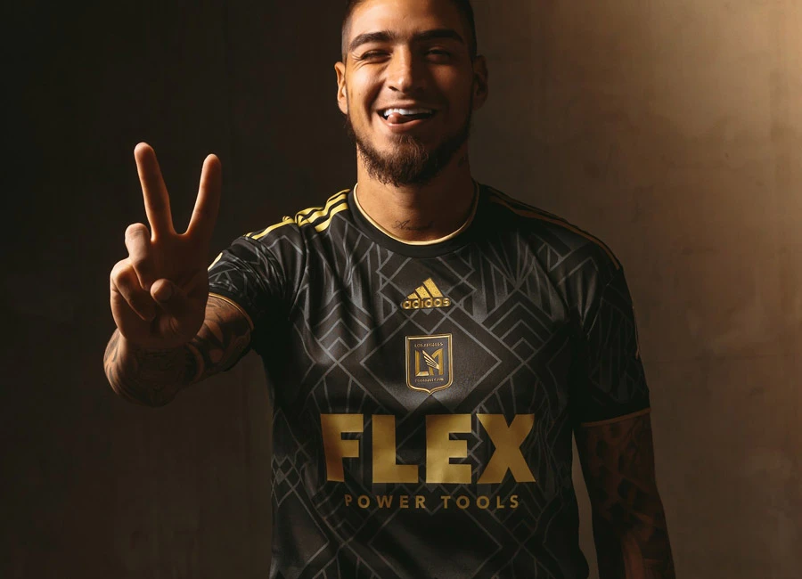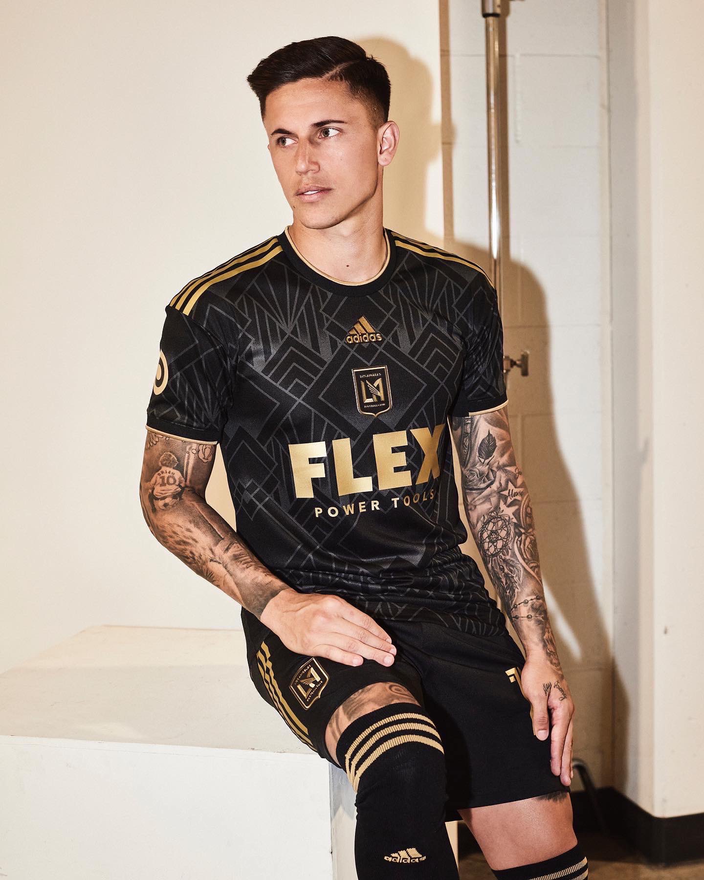 LAFC’s iconic crest is positioned on the center of the chest, along with the adidas logo above, with primary kit sponsor FLEX Power Tools centered on the torso and Target featured on the shoulder of the right sleeve.
