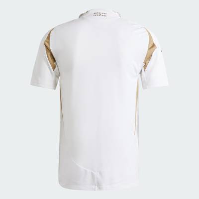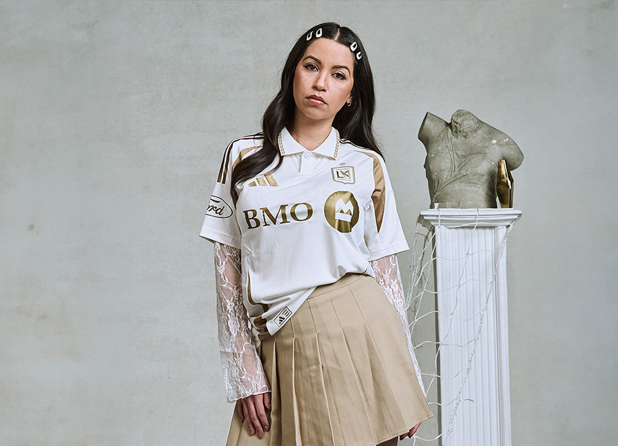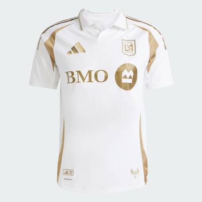 The all-white adidas kit reintroduces the white and gold colourway first worn in LAFC’s debut season. This marks the first time the club has revisited its original away design, which holds significance for long-time supporters. A new feature is the turnover collar, a first in LAFC’s history, with a gold laurel wreath pattern along the trim.